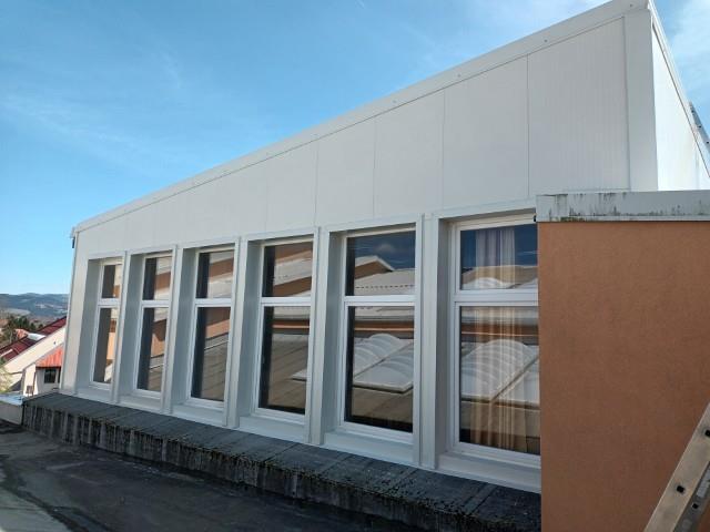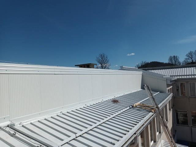 Dela so obsegala demontažo obstoječih kleparskih del, dobavo in montažo podkonstrukcije in fasadnih panelov s pripadajočimi obrobami ter montažo odkapne pločevine.