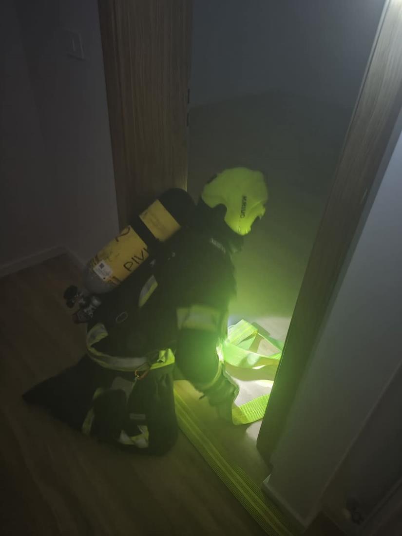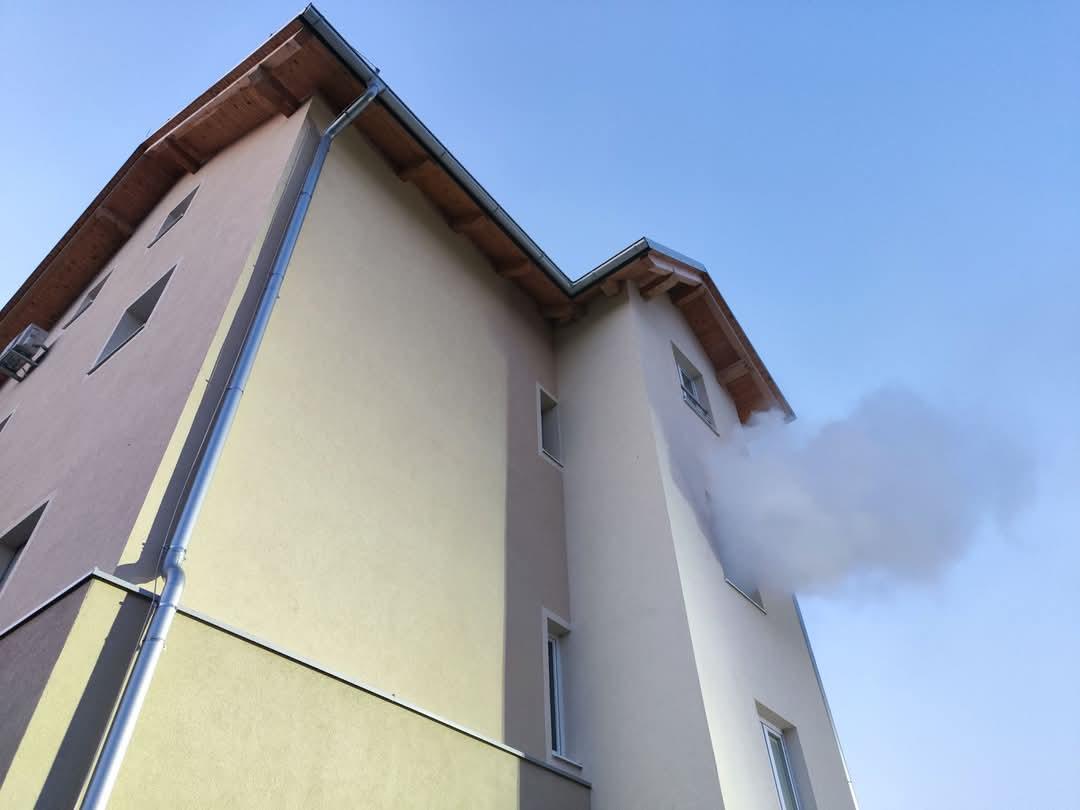 Vaja gašenja požara v večstanovanjskem objektu