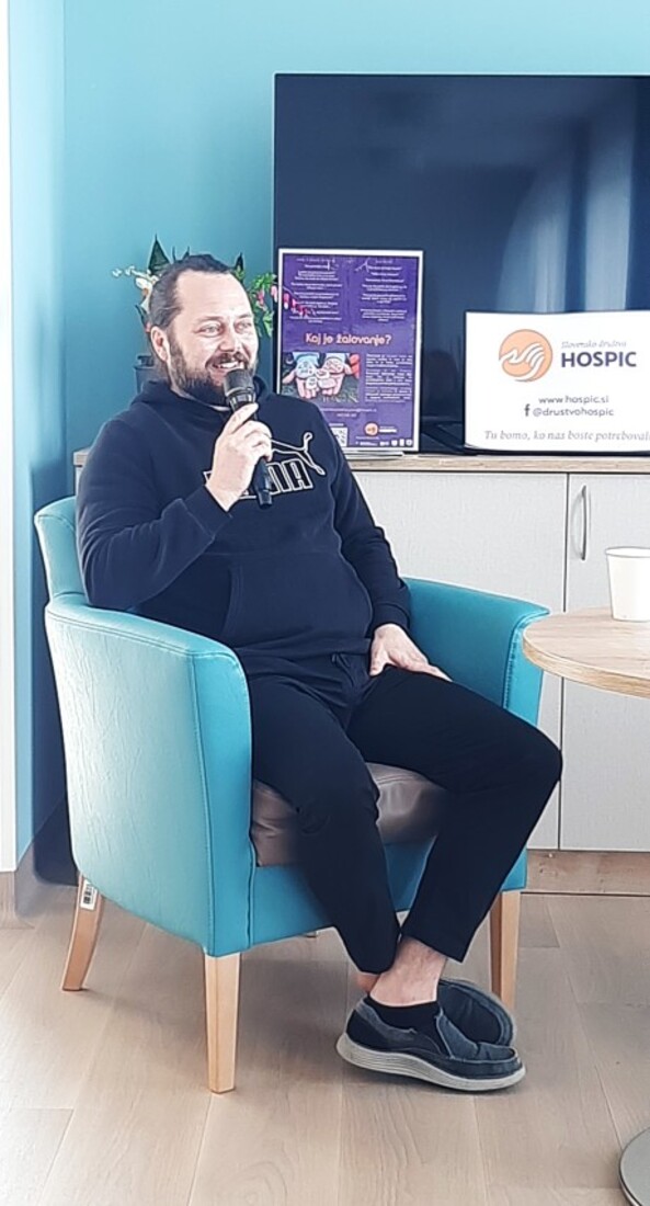 Osrednji dogodek je bil pogovor z gostom Miho Zimškom, ki se v društvu Hospic aktivno ukvarja z najbolj ranljivo skupino, z otroki, ki so izgubili starše ali enega od njih. Z vprašanji je pogovor usmerjal član društva Hospic gospod Bernard Baša, ki ima lastno izkušnjo izgube svojega otroka, kar pomeni nič manjšo bolečino. Žalujoči otroci so še posebej potrebni pozornosti, da bodo lahko razumeli smrt in dojeli smisel nadaljnjega življenja.