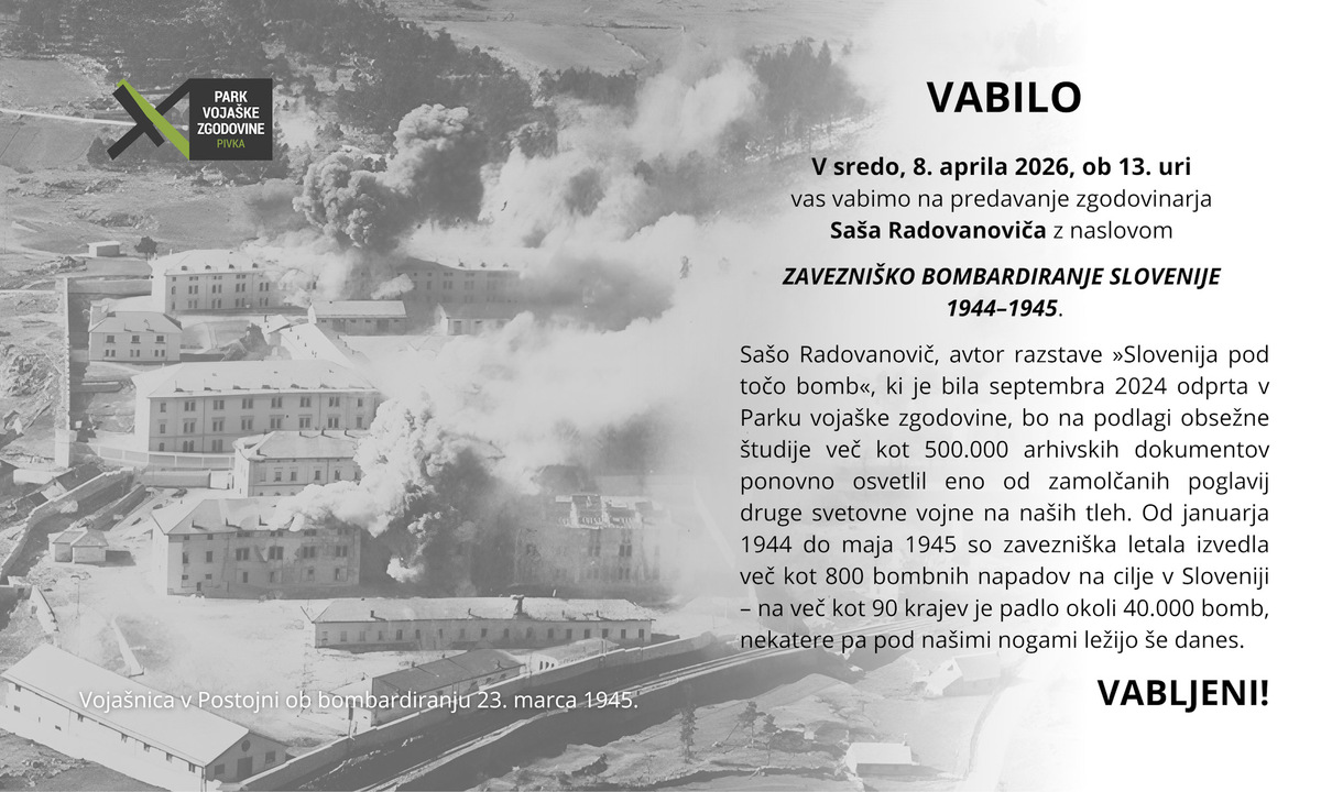 V sredo, 8. aprila 2026, ob 13. uri vas vabimo na predavanje mariborskega zgodovinarja Saša Radovanoviča z naslovom Zavezniško bombardiranje Slovenije 1944–1945.