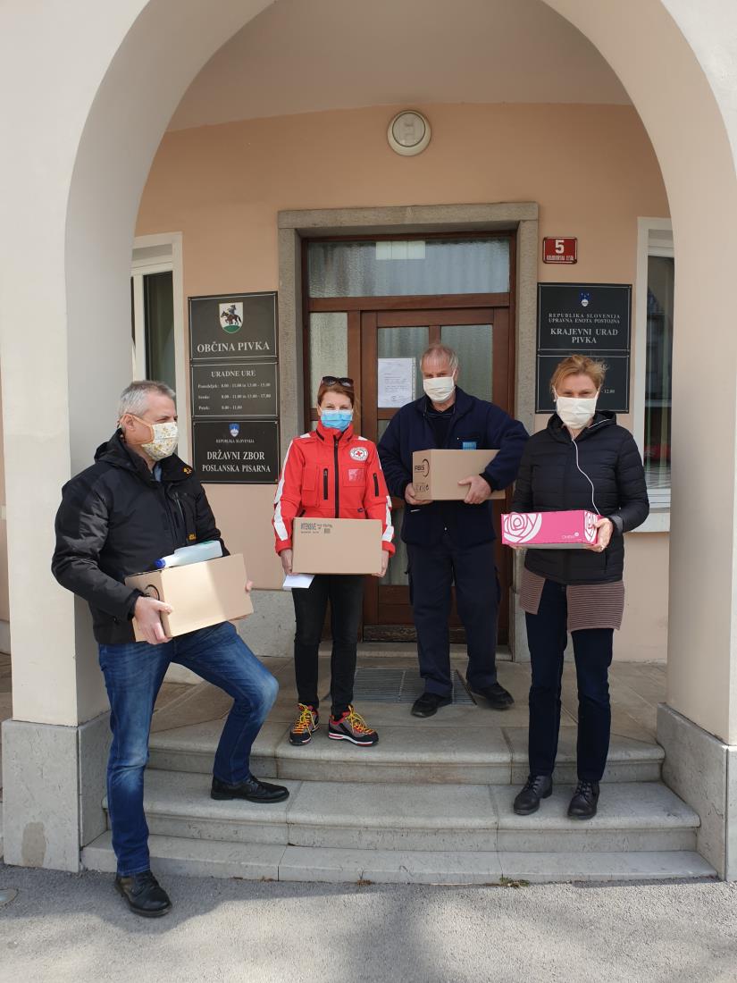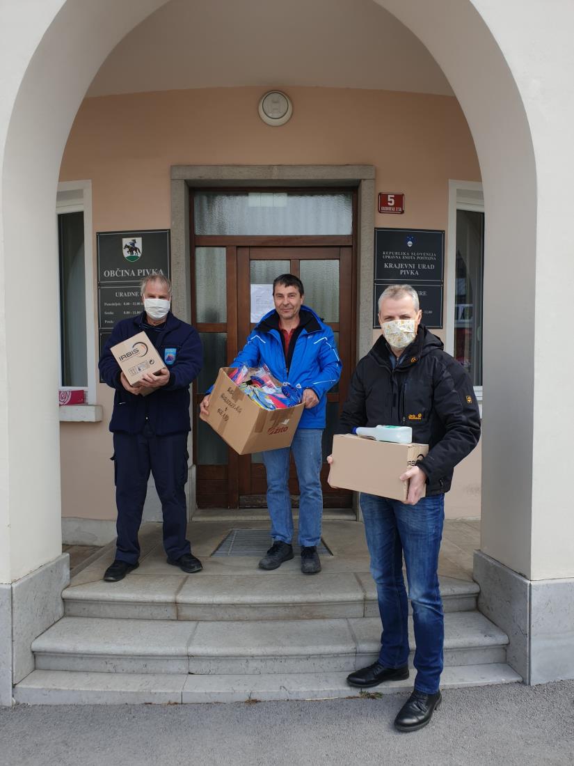Danes sta občinski štab Civilne zaščite in Občina Pivka predala osebna zaščitna sredstva koncesionarju za opravljanje javne snage Komus d.o.o. ter izvajalcu vzdrževanja zelenih površin Karso d.o.o.. Izročili smo jim zaščitna očala ter maske iz blaga za večkratno uporabo.