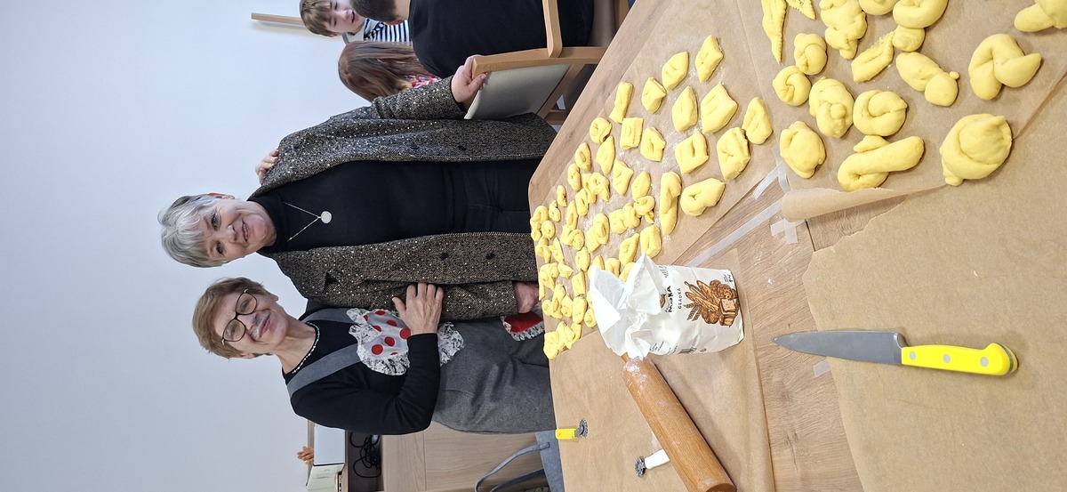 Ko smo ustvarjalni del zaključili, je zadišalo po sladkem. Skupaj s prostovoljkami smo spoznavali pripravo flancatov in mišk ter tekmovali, kdo jih lahko speče največ. Z njimi smo se posladkali prav vsi.