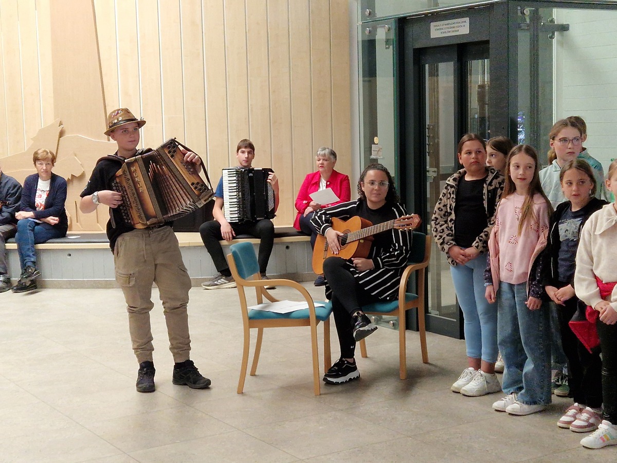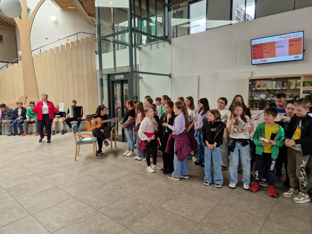 V Krpanovem domu so se danes, 23. aprila, dopoldne zbrali tisti, ki jih druži ljubezen do petja in slovenske pesmi. Med 10.30 in 11.30 so se otroci iz vrtca Pivka in učenci OŠ Pivka ob spremstvu harmonikarjev pridružili pobudi "Vseslovensko petje s srcem". Dogodek je povezovala Jana Gržinič.