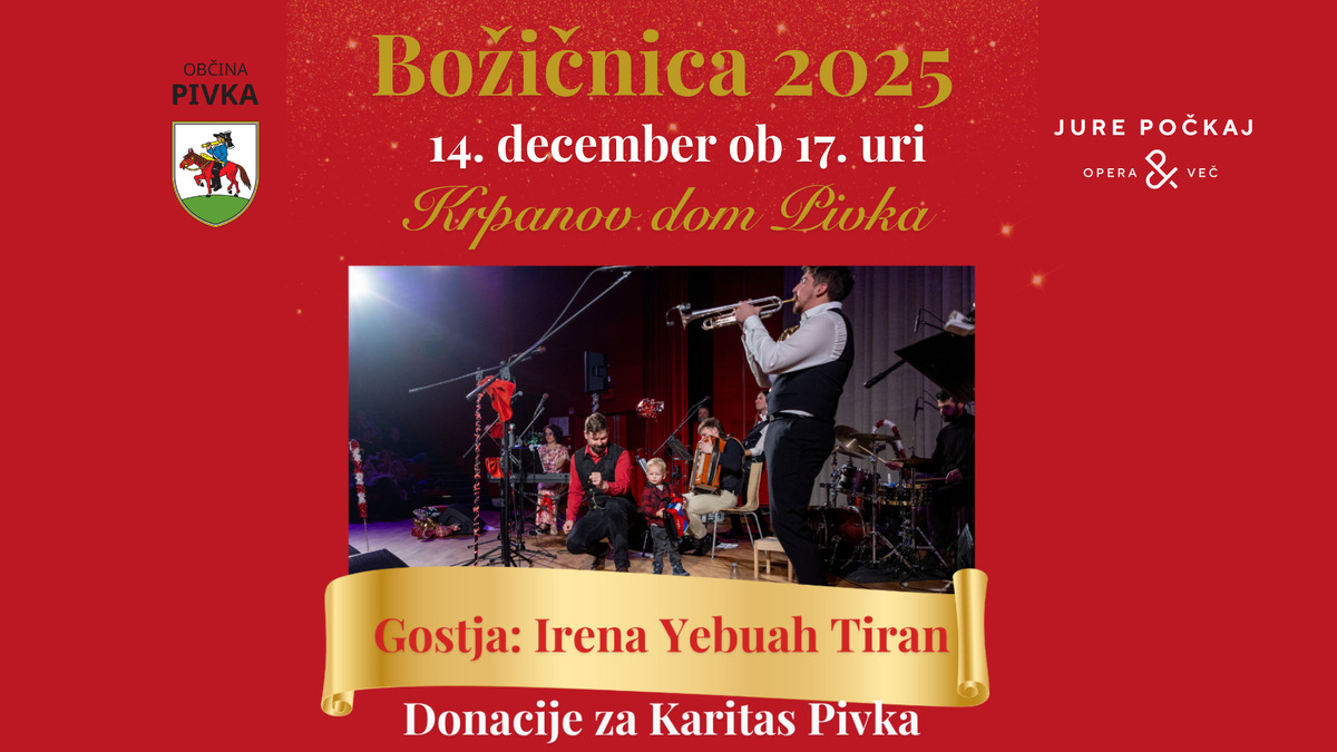 Občina Pivka vabi na glasbeni večer Božičnica 2025, ki bo v nedeljo, 14. decembra, ob 17. uri v Krpanovem domu v Pivki.