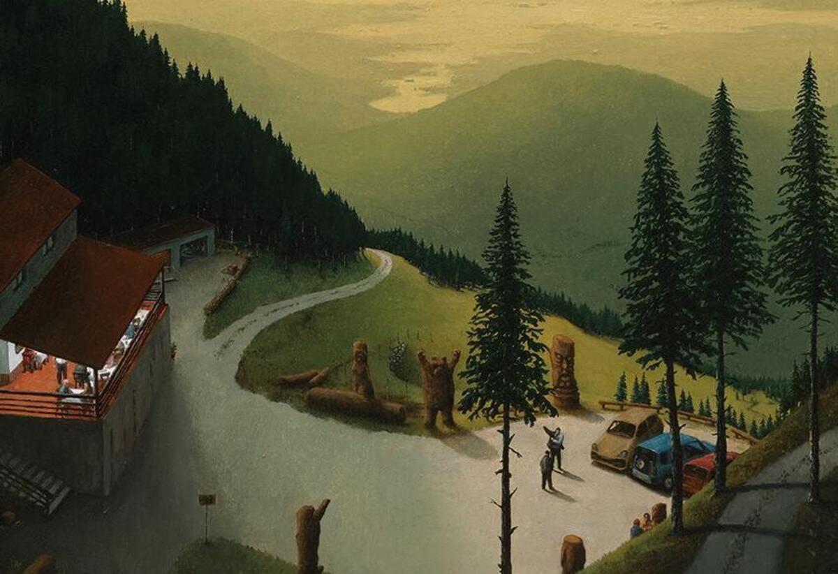 Umetnik k ustvarjanju vselej pristopa pripovedno, s širokim pogledom vsevednega pripovedovalca, ki se razpira v naravno ali redkeje mestno krajino, kjer opazuje drobne človeške figure pri njihovih vsakdanjih opravilih. Spričo širine pogleda, ki sega prek dometa posameznega človeškega življenja in njegovih družbenih ali materialnih tvorb, se na prvi pogled njegove slike zdijo idilične prispodobe nespremenljivosti in trdnosti (naravnega) reda, a bolj ko se gledalec posveča podrobnostim, bolj se v njem naseljuje negotovost in nelagodje. Ne le zato, ker drobne človeške figure sredi prostrane krajine delujejo osamljeno in izgubljeno, pač pa tudi njihovega početja ne more povsem razumeti, saj ostaja nedorečeno, napol zakrito z rastlinjem ali sencami, čudaško (nekje se figure denimo oblačijo v obleke rimljanskih vojščakov, drugje gole okopavajo njive) in skrivnostno. Podobno velja tudi za človeške tvorbe in njihove pritikline; stavbe ali konstrukcije so pogosto vmeščene v nenavadne kraje, zdijo se nedokončane ali zapuščene, obdane z ograjami, ki se nenadoma zaključijo, vozili, ki so parkirana sredi ničesar ... skratka, vse znake človeške dejavnosti preveva nekakšna nedorečnost in nesmiselnost, tujost, ki spodbudi gledalčevo domišljijo, da začne ugibati, kaj se na sliki pravzaprav dogaja, in ko te indice poveže s svojo vsakdanjo izkušnjo, mu postane jasno, da najbrž nič dobrega. Ta občutek še dodatno poudarja atmosfera, ki dogajanje postavlja v okrilje noči ali sredi žareče svetlobe, v čas nevsakdanjih naravnih pojavov, kot je npr. lunin mrk, in na ozadje neke neopredeljene, oddaljene katastrofe, ki jo nakazuje zgolj nenavadna barva neba ali svetloba.