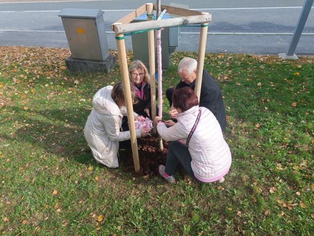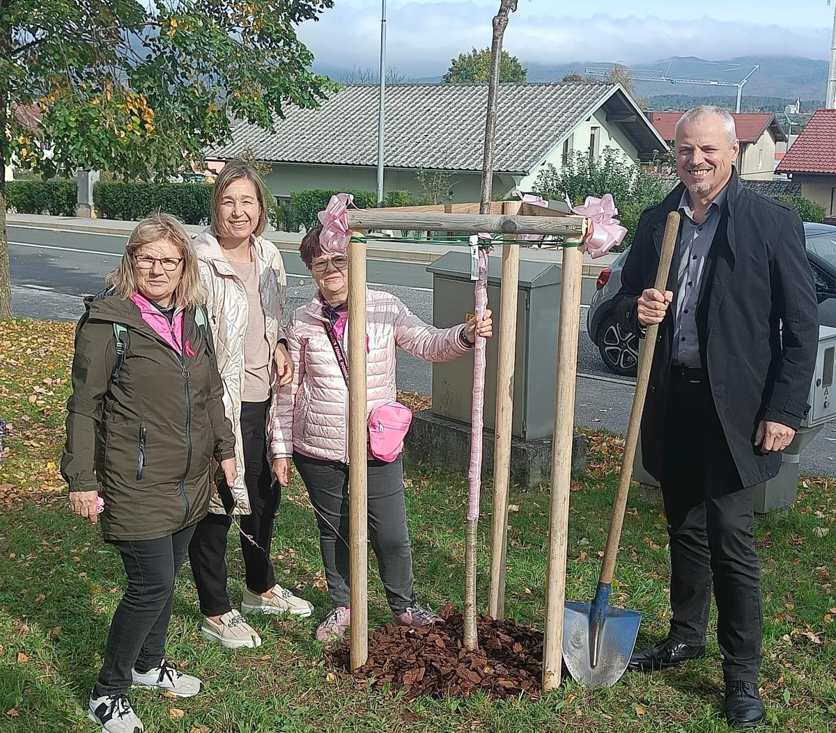 Ob mesecu osveščanja o raku dojk v Pivki zasadili rožnato drevo