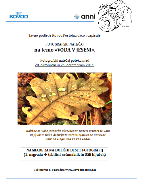 - Fotografski natečaj je namenjen uporabnikom Javnega podjetja Kovod Postojna d.o.o., torej občanom občin Postojna in Pivka.
