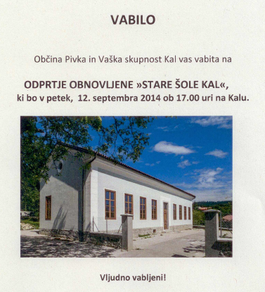 VABILO NA ODPRTJE OBNOVLJENE "STARE ŠOLE KAL"