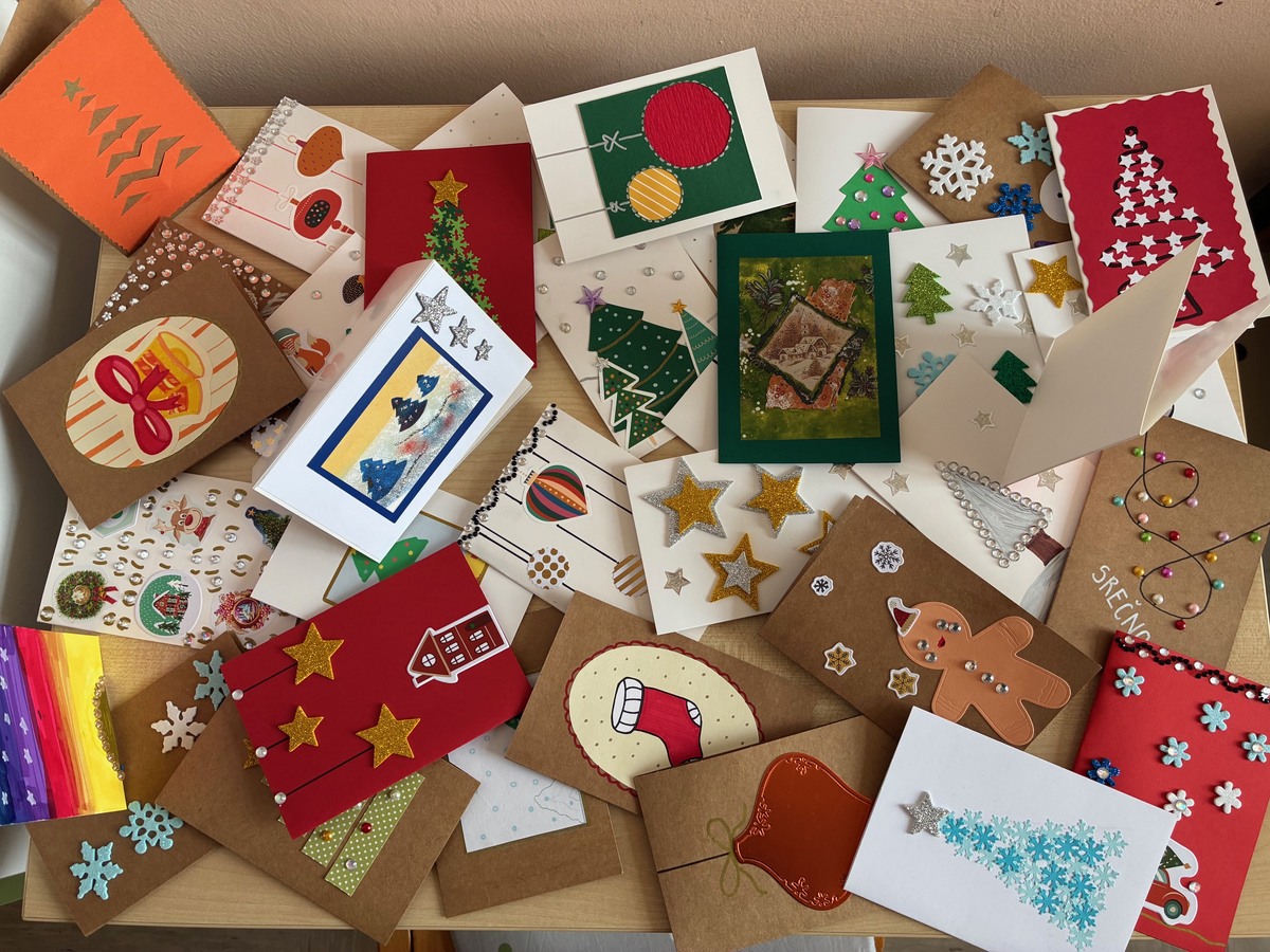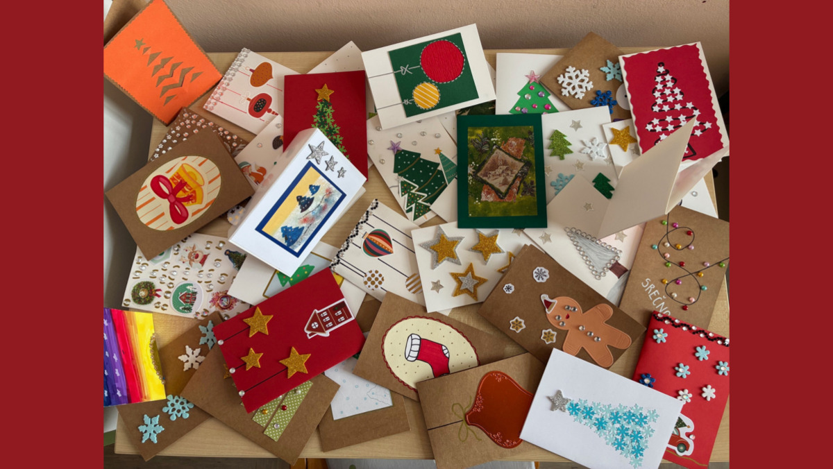 V predprazničnem času je nastalo tudi več kot sto unikatnih voščilnic z zimskimi in prazničnimi motivi. Vsaki je bilo dodano tudi voščilo, člani Rdečega križa pa jih bodo v teh dneh razdelili starejšim občanom ter jim tako polepšali praznične trenutke.