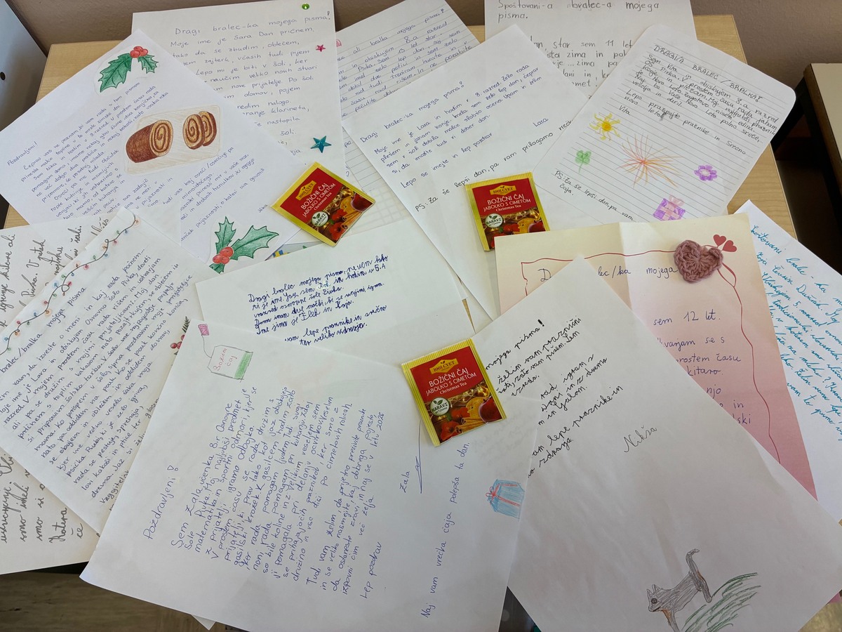 Učenci so sodelovali tudi v vseslovenski akciji Pisma za lepši dan, ki spodbuja ročno pisanje in izražanje pozornosti do starejših ter osamljenih. S skrbno zapisanimi mislimi, lepimi željami in drobnimi pozornostmi so ustvarili pisma, ki so bila poslana na Slovensko Karitas. Tam bodo prostovoljci poskrbeli, da bodo pisma dosegla stanovalce domov za starejše po vsej Sloveniji.