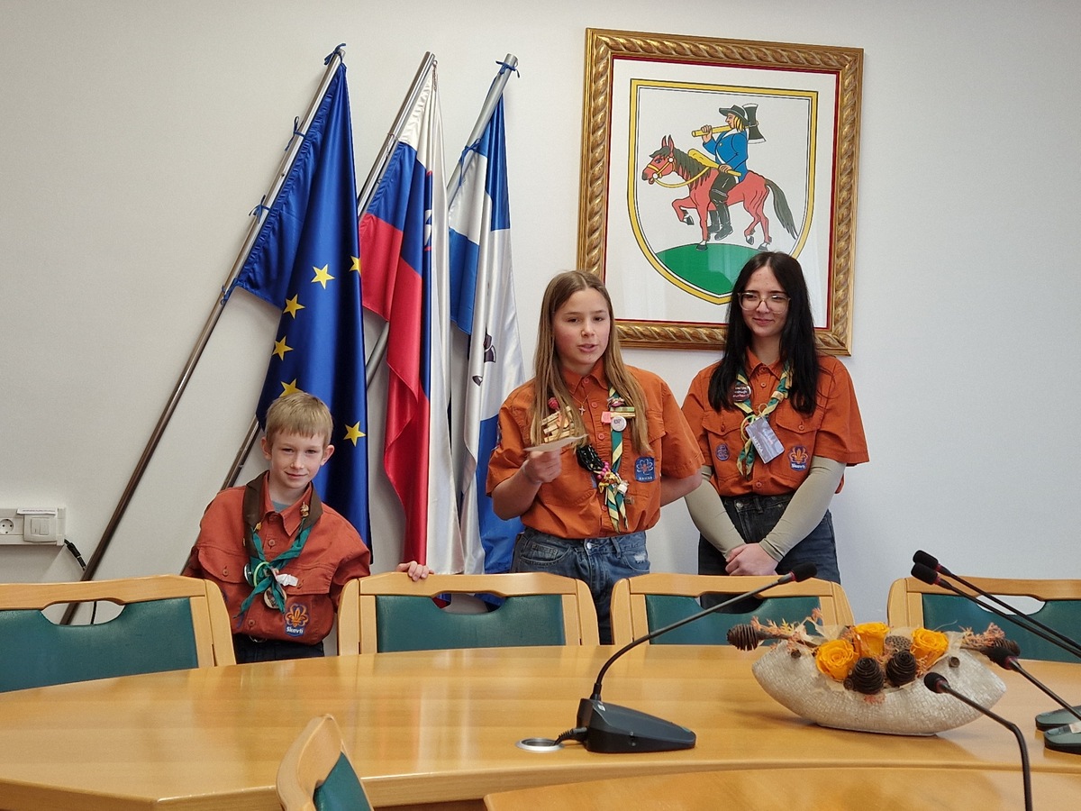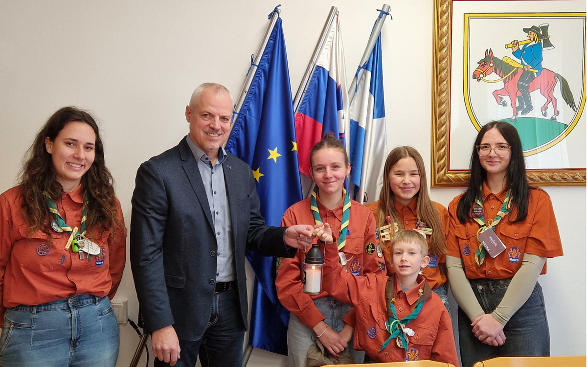 Skavti Skavtskega stega Postojna so tudi letos na Občino Pivka prinesli Luč miru iz Betlehema, ki s svojim sporočilom prinaša tudi dobrodelni namen. Danes jih sprejel župan Robert Smrdelj.