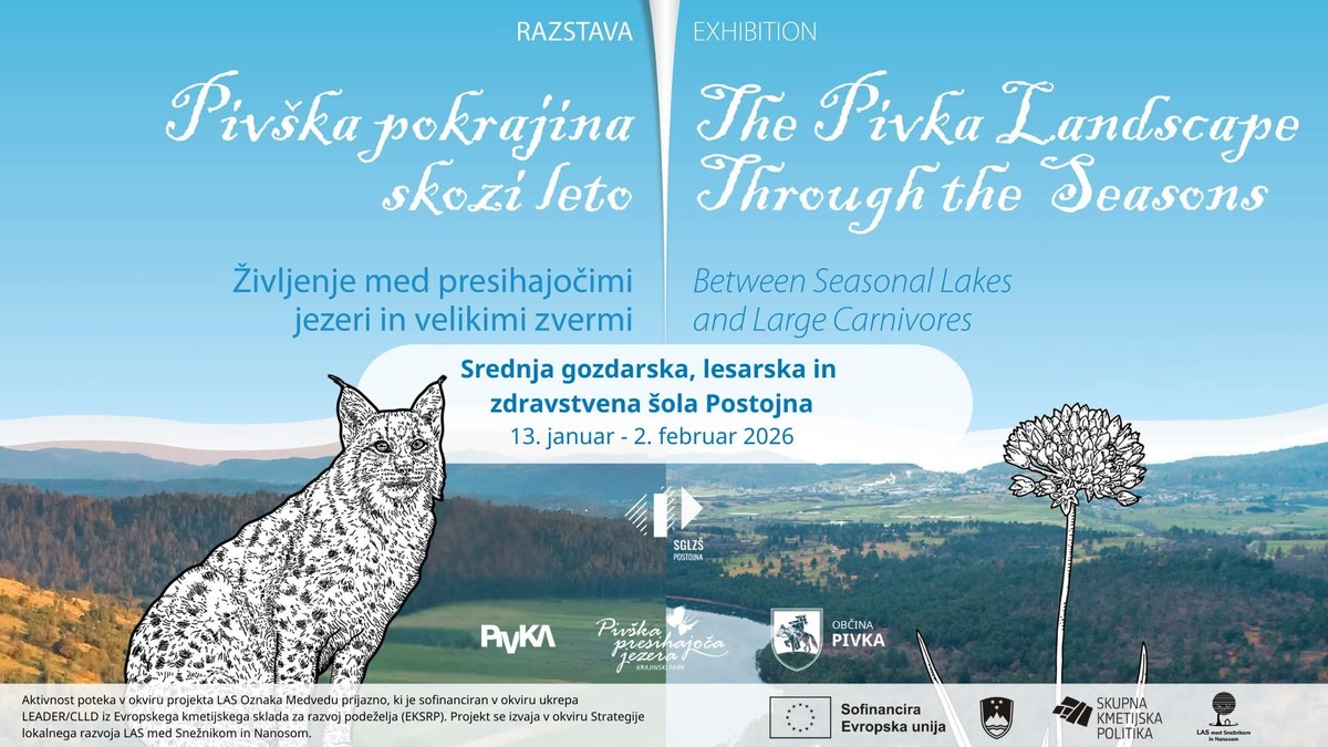 V avli Srednje gozdarske, lesarske in zdravstvene šole Postojna (SGLZŠ) bo med 13. januarjem in 2. februarjem 2026 na ogled razstava Pivška pokrajina skozi leto – življenje med presihajočimi jezeri in velikimi zvermi. Razstava obiskovalcem približa naravne posebnosti Pivške kotline, presihajoča jezera ter življenje velikih zveri.