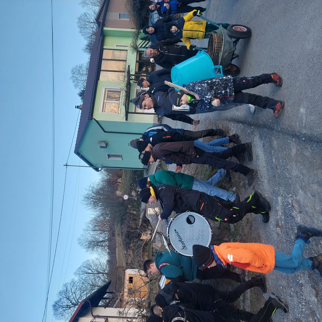 Po nedeljskem praznovanju v krogu domačih se vaščani zberemo v ponedeljek na t.i. "pandelku po shwadi" sredi vasi pod Cuntovim nadstreškom. Združene generacije, predvsem moških, hodijo od hiše do hiše, kjer z dobrimi mislimi, s pesmijo in harmoniko razveselijo domače, ti pa v zameno darujejo klobase in druge darove. Tudi letos je bila naša "karjola" polna dobrot. Neverška posebnost je tudi "osmina po shwadi", ki jo praznujemo prvo soboto po shodu. Tako smo se ponovno zbrali 24. januarja, ko so pridne ženske pripravile krompir u zevnici s klobasami in odlične palačinke. Lovska koča je bila polna dobre volje, dolgo v noč pa je odmeval glas harmonike.