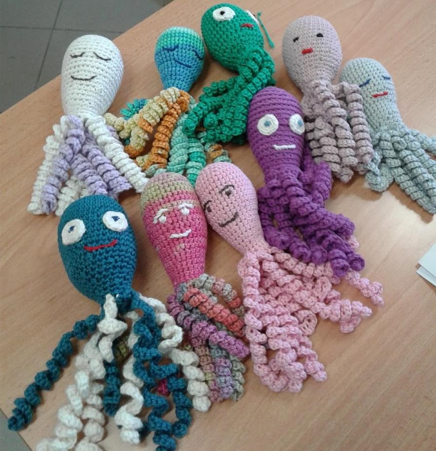 Članice Društva upokojencev Pivka smo že v zimskih počitnicah sodelovale z Večgeneracijskim centrom v Pivki. Otroke smo učile osnov ročnih del. Z voditeljico VGC-ja Romano Morano smo sklenili nadaljevati sodelovanje. Pri iskanju namena sem naletela na Projekt Hobotnica, kjer kvačkajo terapevtske hobotnice za nedonošenčke v inkubatorjih. Pridobile smo navodila, po omarah smo pobrskale po ostankih bombažnega kvačkanca in tako so nastala naša petkova druženja.