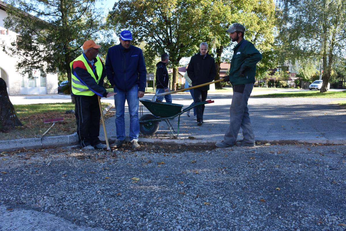 Na Jurščah pa se izvajajo razširitev in preplastitev obstoječe zgornje ceste ter krpanje asfalta na glavni cesti skozi Juršče.