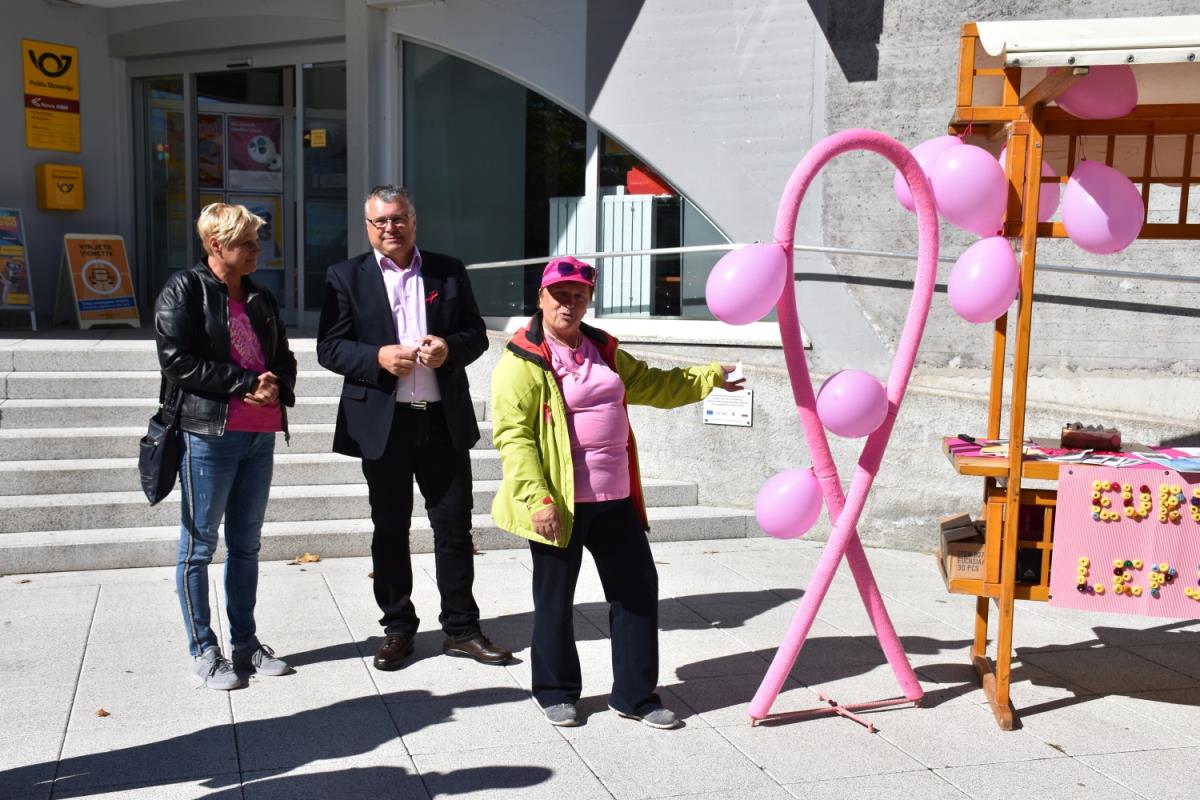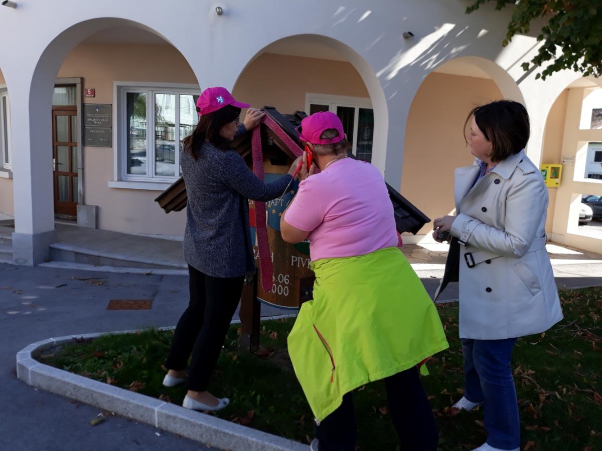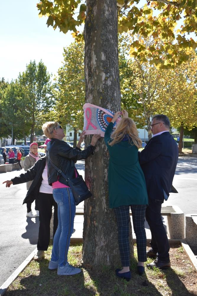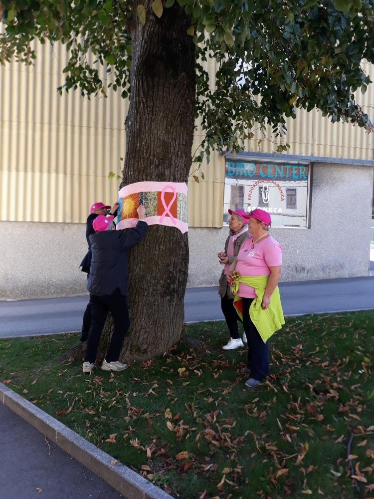 V Pivko so, poleg domačink, prispele članice združenja iz Postojne, vsem, ki smo se jim pridružili, pa so nadele rožnate pentljice. Pred Krpanovim domom jih je sprejel podžupan Boris Rebec, z njimi je pokramljal o delovanju organizacije na pivškem in postojnskem. Poudaril je, da je njihova prisotnost in delovanje izrednega pomena za ozaveščanje družbe ter jim zaželel veliko pozitivne energije in rožnate moči pri nadaljnjem delu. Zbranim je spregovorila Darja Rojec, predstavnica vodstva Europe Donne v Sloveniji, skupaj s podžupanom, predstavnicami občine in članicami združenja so v rožnato ovili drevesa v središču Pivke.