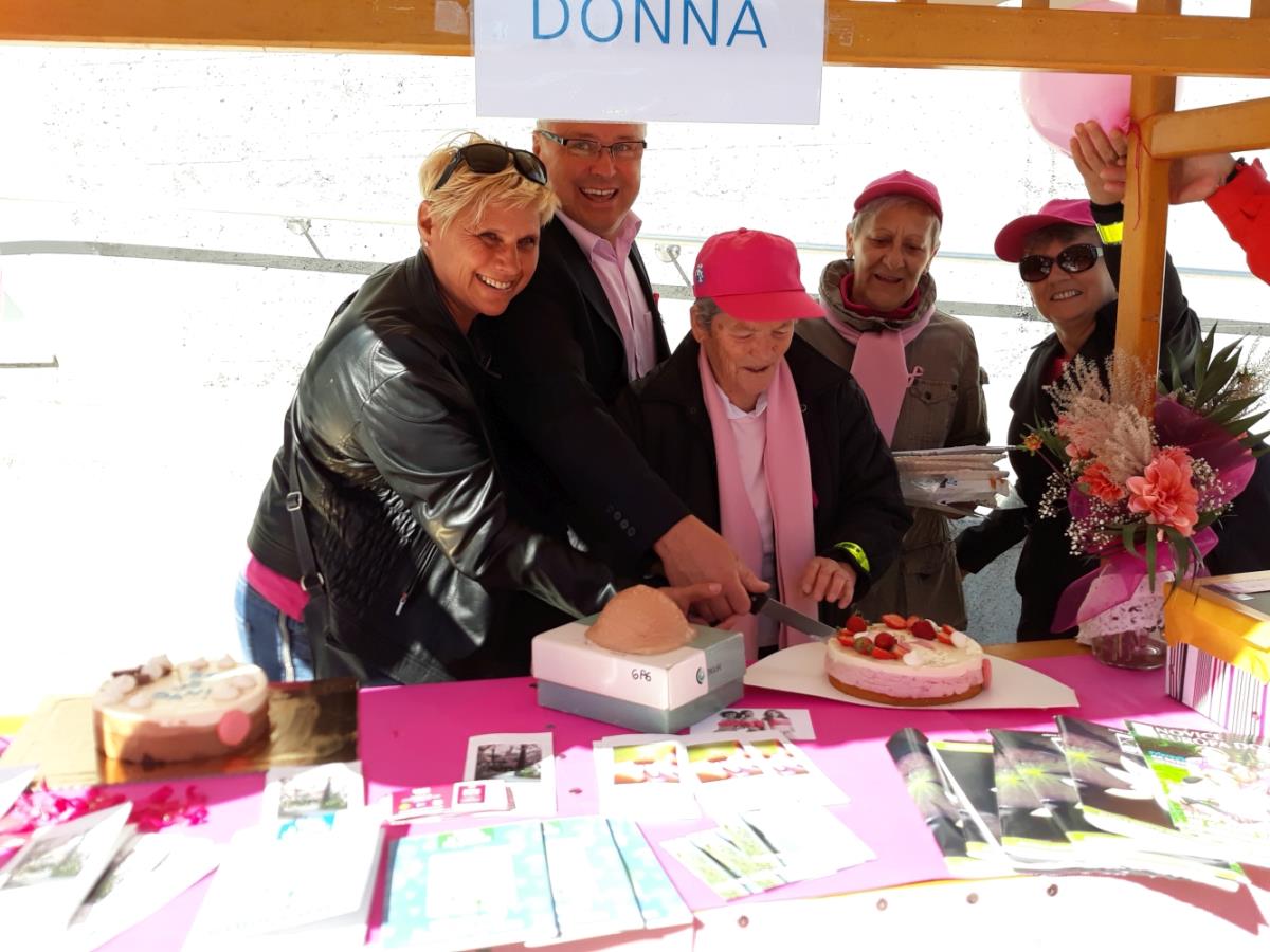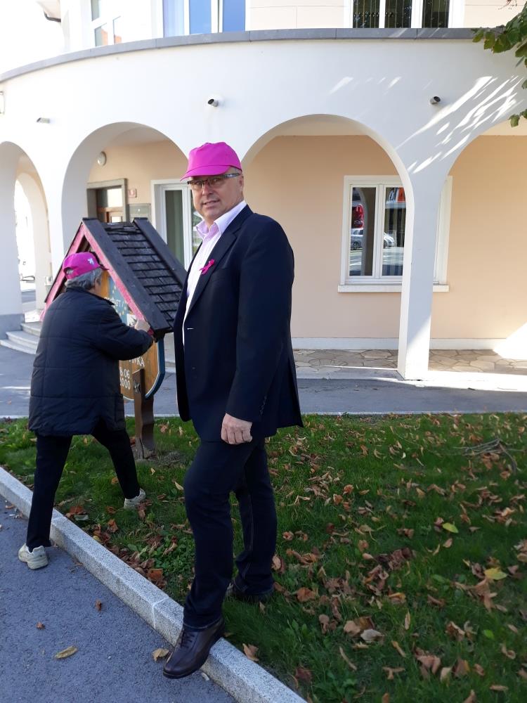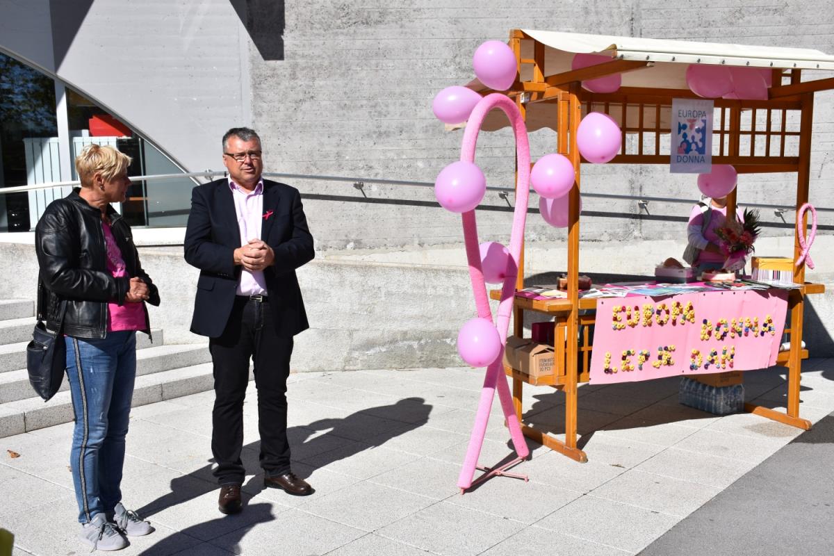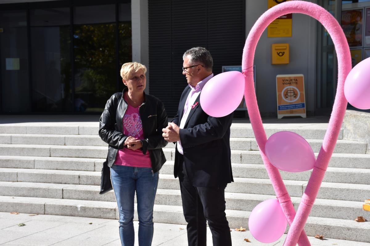 V Pivko so, poleg domačink, prispele članice združenja iz Postojne, vsem, ki smo se jim pridružili, pa so nadele rožnate pentljice. Pred Krpanovim domom jih je sprejel podžupan Boris Rebec, z njimi je pokramljal o delovanju organizacije na pivškem in postojnskem. Poudaril je, da je njihova prisotnost in delovanje izrednega pomena za ozaveščanje družbe ter jim zaželel veliko pozitivne energije in rožnate moči pri nadaljnjem delu. Zbranim je spregovorila Darja Rojec, predstavnica vodstva Europe Donne v Sloveniji, skupaj s podžupanom, predstavnicami občine in članicami združenja so v rožnato ovili drevesa v središču Pivke.