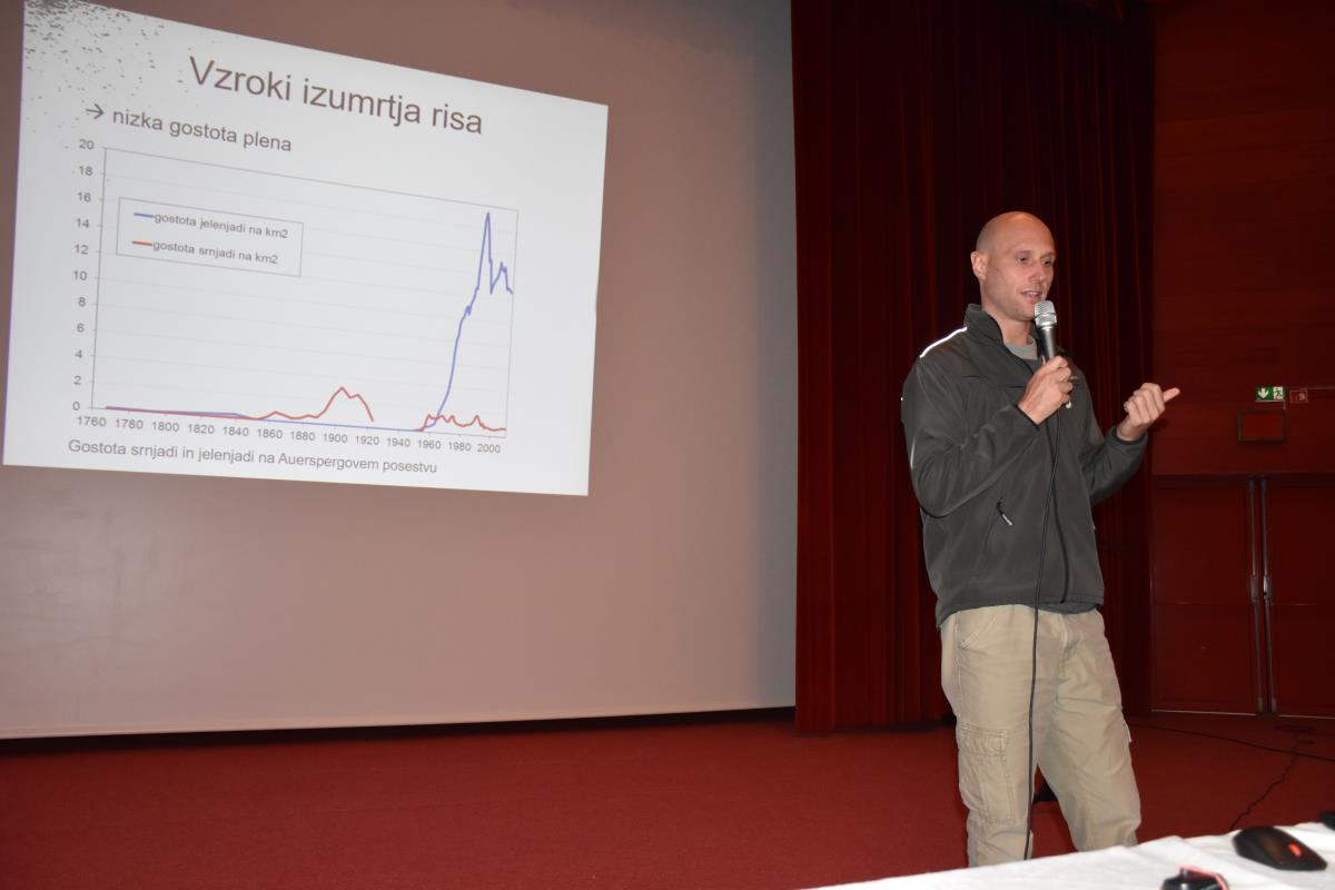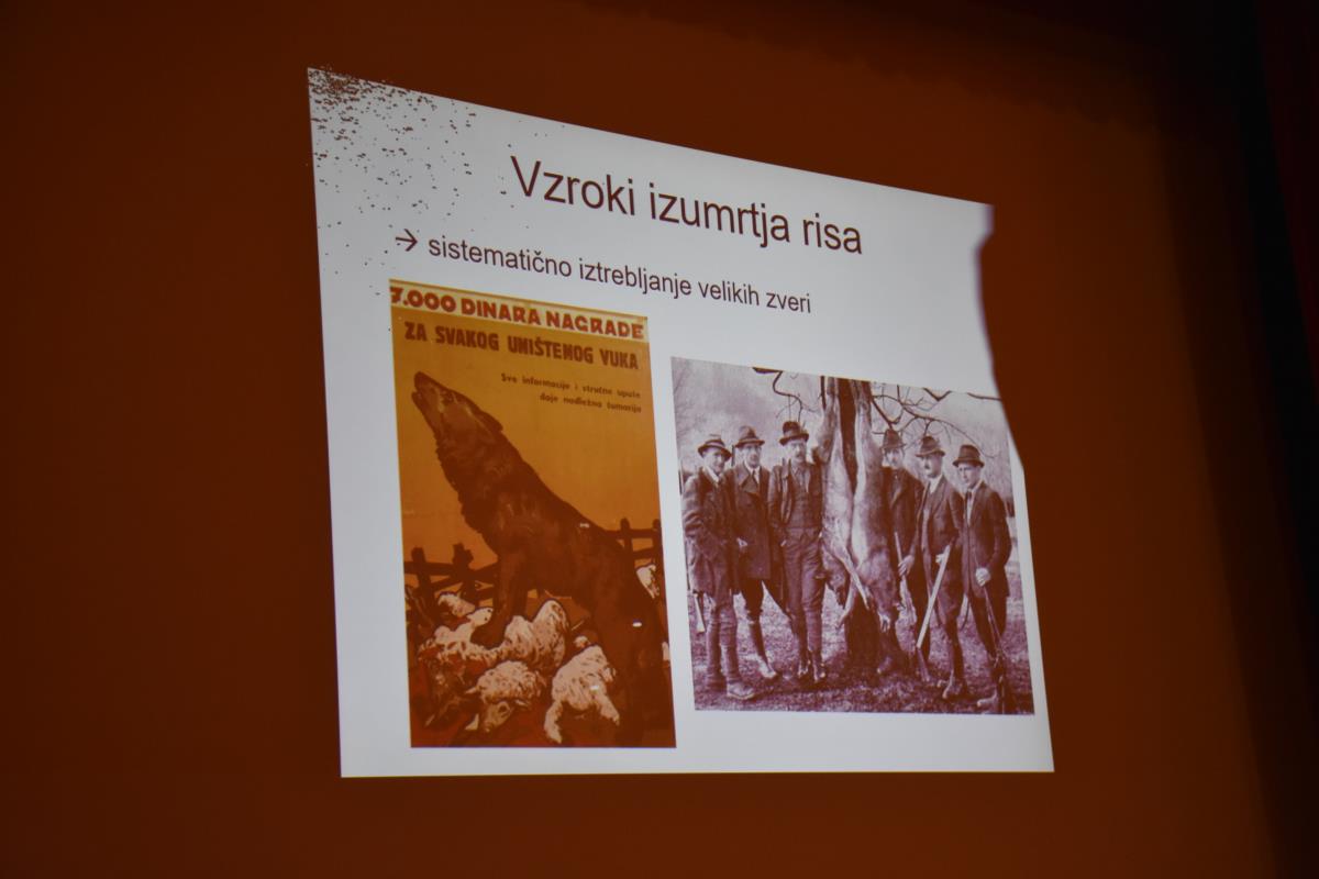 Ogledali smo si tudi dokumentarni film o doselitvi risa leta 1973 z izjemnimi posnetki krajine in zelo zanimivimi pričevanji akterjev takratne doselitve risa, ki jo je sprožil in financiral lovski gost iz Švice, izvedli pa kočevski lovci. Avtorje filma in način nastanka filma nam je opisal član projektnega tima Seth Wilson, sicer raziskovalec velikih zveri iz Montane, ZDA.