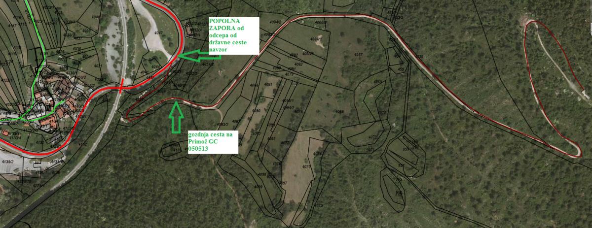 Obveščamo, da bo v času od 29.7.2019 do 6.8.2019 POPOLNA ZAPORA gozdne ceste št. GC 050513 CESTA NA PRIMOŽ zaradi izvedbe investicijsko vzdrževalnih del. Obvoza ni.