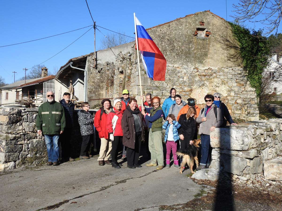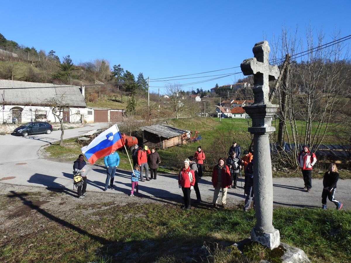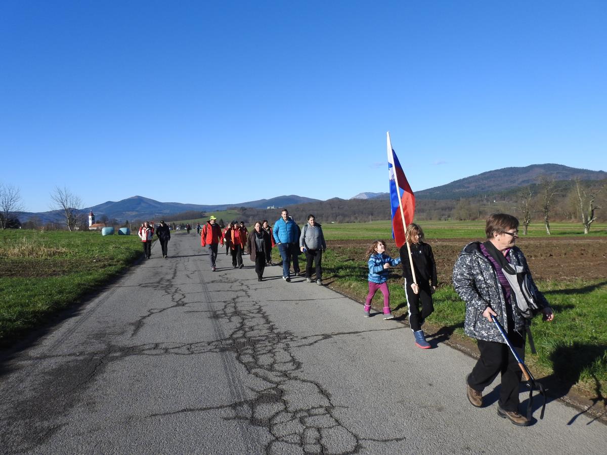 Državni praznik Dan samostojnosti in enotnosti je praznik, ki ga praznujemo takoj za božičem, tako da v nas odmeva nadvse slovesno. Pred 29 leti smo državljani Slovenije izkoristili »nasmeh zgodovine« in se izrekli za samostojno državo. Kulturno društvo Lipa Pivka je povabilo na tradicionalni pohod po poteh kamnite dediščine, značilnih pivških križev, ki se ga je udeležilo devetnajst pohodnikov vseh generacij od otrok do starejših, domačini iz okoliških krajev, pa tudi iz Postojne in Vrhnike. Tako čudovitega sončnega vremena organizatorji niso mogli pričakovati niti v sanjah. Na nebu ni bilo nobenega oblačka, ozračje pa se je iz minute v minuto segrevalo. Pohodniki so se najprej ustavili pri Ciganski luži in Studencu, primeru kamnite dediščine. Studenec iz leta 1750 je postavil župan Simon Čelhar. Nato nas je pot vodila do župnijske cerkve sv. Petra, kjer smo si ogledali notranjost cerkve in njeno poslikavo s freskami Staneta Kregarja. Pritegnile pa so nas lepo izdelane jaslice v cerkvi, zunaj v lopi pred cerkvijo pa originalne jaslice veroučencev, ki so jih oblikovali s poslikavo velikih kamnov. Pot nas je vodila naprej mimo železniške proge in železniške postaje do Hrastja, kjer smo si ogledali zanimiv kamniti križ iz začetka 19. stoletja. Nadaljevali smo pot do spomenika Stanetu Požarju, ki je bil žrtev vojne za Slovenijo. Tu smo prižgali svečko v spomin in zahvalo. Mimo vojašnice Staneta Požarja smo se spustili do vasice Velika Pristava, ki velja za zelo staro naselje. Sredi vasi nas je sprejela domačinka Miljana Butina Smrdel, ki je bila organizatorka obnove tamkajšnjega suhega zidu. Povedala nam je, kako so se lotili obnove zidu, ki velja za lep primer nesnovne kulturne dediščine. To je veščina in znanje, ki so ga naši predniki obvladali, v našem času pa se je precej pozabilo. Sedaj se veščina in z njo suhi zidovi obnavljajo v krajih, kjer je kamen doma. Je pa ta slovenska kraška znamenitost tudi vpisana na seznam Unescove nesnovne dediščine. Nato nas je še pogostila z domačim žganjem in sokom ter zaželela dobro pot naprej. Naslednji postanek smo naredili v Šmihelu in si ogledali cerkev in jaslice, nato pa odšli do cerkve sv. Jakoba v Narinu, kjer smo občudovali znamenite zlate oltarje. Naš cilj je bil Narin, še postanek pri dveh kamnitih križih in prispeli smo do turistične kmetije pri Andrejevih, kjer so nas lepo sprejeli. Ker je bil državni praznik, smo pripravili tudi krajši kulturni program. Kot se za prireditev spodobi, smo jo začeli z našo himno, ki jo je Zala zaigrala na violončelo. Na vsej poti nas je spremljala naša slovenska zastava in Zala je recitirala Kuntnerjevo pesem Ta zastava. Sledile so še pesmi Slovenska pomlad in Družina, Lara pa je recitirala Zdravljico in Pavčkovo pesem Ko hodiš za soncem. Pohodnica Jadranka Šinko je dodala še osebnoizpovedno pesem člana društva Vezi, ki je v pesmi izrazil vse tisto, kar človek potrebuje za preprosto življenje in srečo. Čudovit dan smo zaključili ob odlični domači obari in štrukljih ter prijetnem klepetu in pogovoru.