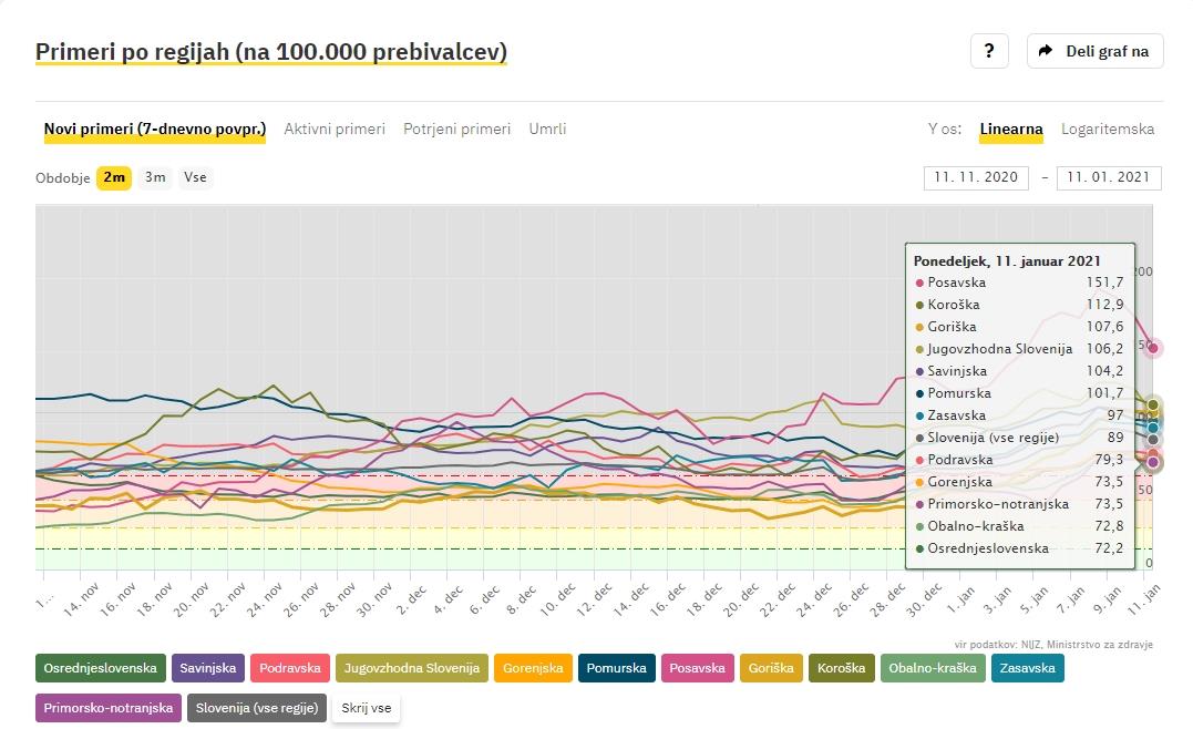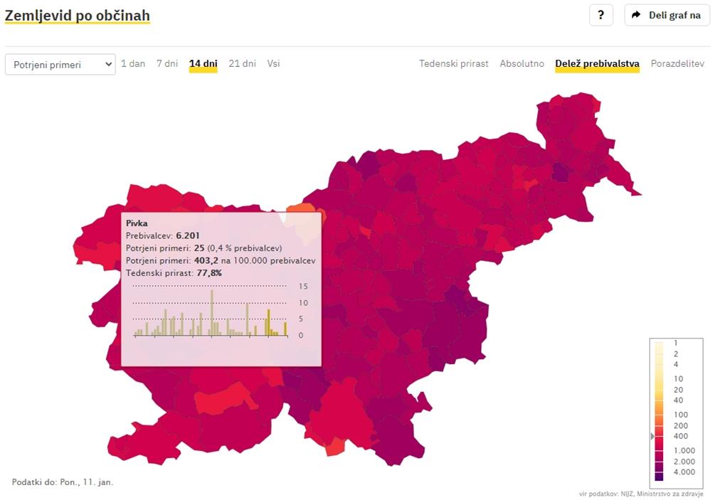 Na današnji dan je število aktivnih potrjenih okužb v občini 25 oziroma 403,2 na 100.000 prebivalcev, in če se primerjamo v slovenskem merilu smo ena izmed najmanj okuženih občin in tudi stanje v celoti regiji je eno izmed boljših v Sloveniji.