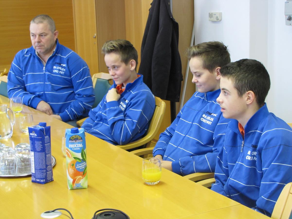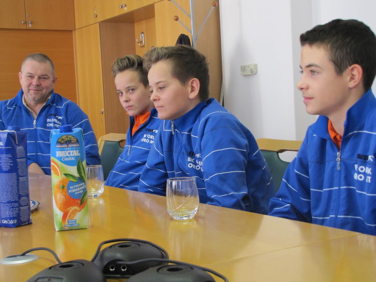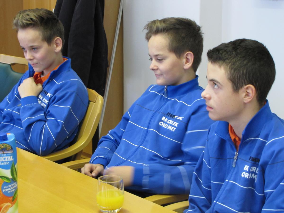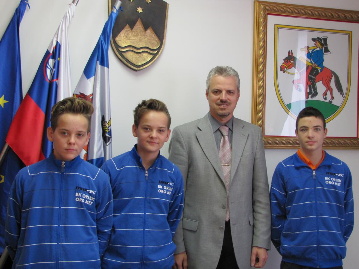 Župan Občine Pivka Robert Smrdelj in podžupan Boris Rebec sta danes sprejela uspešno skupino dečkov iz Balinarskega kluba Orlek ORO MET. Dečki, ki nastopajo v kategoriji U-14, so na letošnjem državnem prvenstvu poželi številne uspehe. Najbolj odmevni sta bili dve prvi mesti Patrika Požarja v natančnem zbijanju in prvo mesto v hitrostnem zbijanju ter prvo mesto bratov Gašperja in Domna Sedmaka v dvojicah. Vsi trije mladi balinarji so člani državne reprezentance Slovenije U-15.