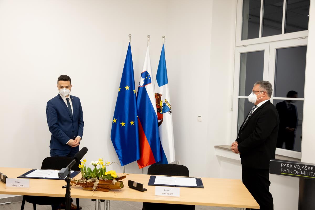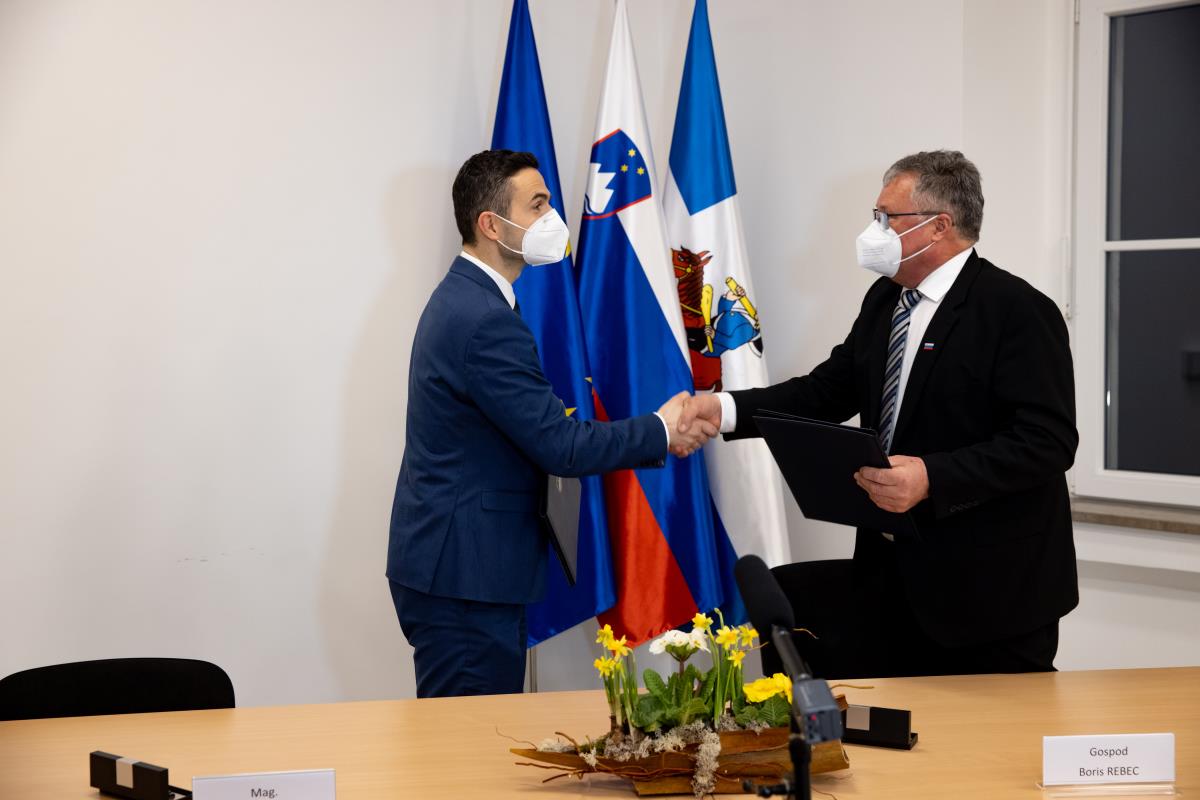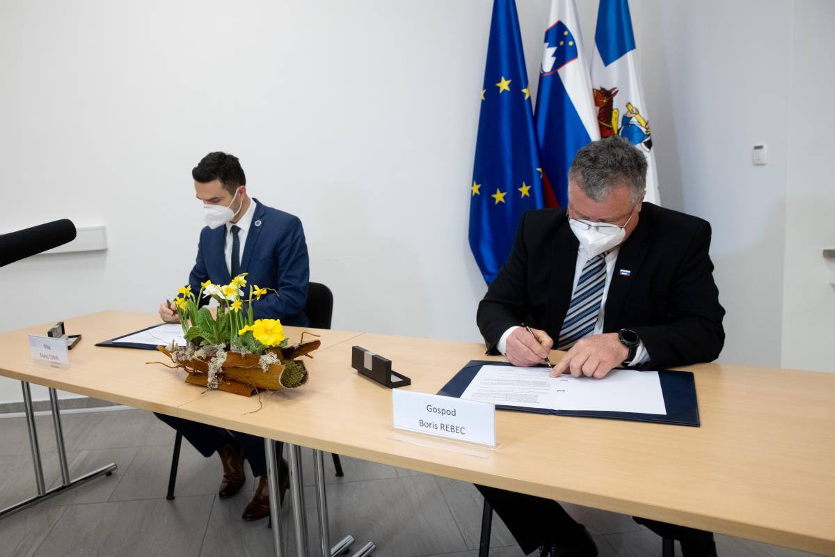 Minister za obrambo mag. Matej Tonin in podžupan Občine Pivka Boris Rebec sta včeraj v Parku vojaške zgodovine v Pivki podpisala Dodatek št. 4 k Dogovoru iz leta 2008 o sofinanciranju investicij lokalne javne infrastrukture v občini Pivka.