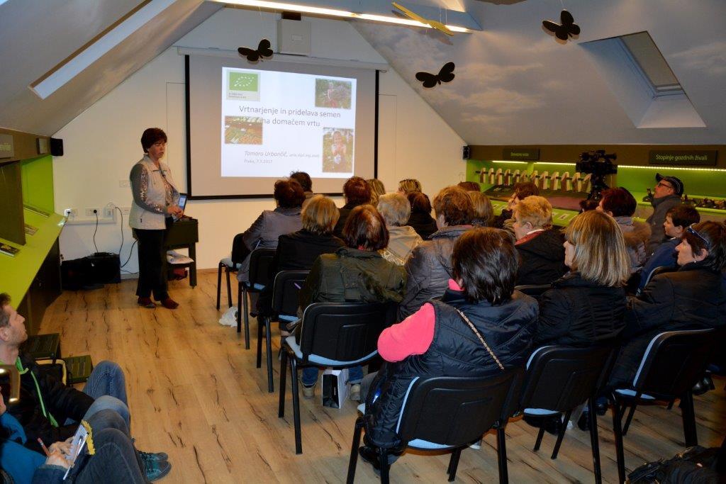 Na predvečer dneva žena je nabito polna učilnica Ekomuzeja Pivških presihajočih jezer prisluhnila predavanju Tamare Urbančič, svetovalke za ekološko kmetovanje.