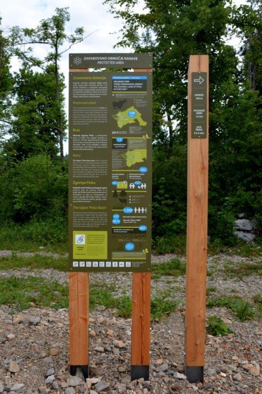 Na makadamskem parkirišču pod Slovensko vasjo smo postavili info tablo, kjer obiskovalec lahko »na hitro« izve nekaj zanimivih podatkov o parku.