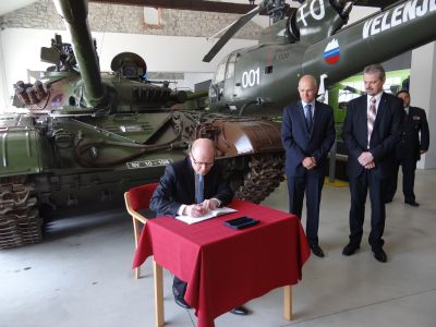 V spremstvu zunanjega ministra Vlade RS Karla Erjavca, načelnika Generalštaba SV generalmajorja dr. Andreja Ostermana, veleposlanice Češke republike ga. Věra Zemanová v Ljubljani in drugih visokih gostov si je ogledal zbirke Parka vojaške zgodovine in odprl fotografsko razstavo treh čeških vojnih fotografov iz prve svetovne vojne.