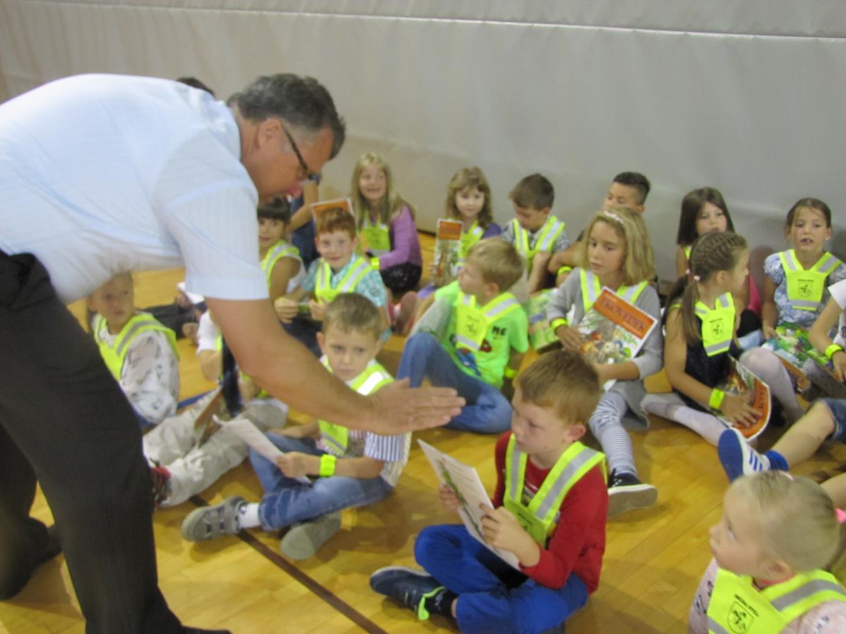 Nove člane šolskih skupnosti so na obeh šolah z uprizoritvijo igric pozdravili učenci višjih razredov. Spregovorili pa so jim tudi podžupan Boris Rebec, ki je hotel vse vedeti o tem, kaj vse so si otroci zložili v šolske torbe, ter predstavnika Sveta za preventivo in vzgojo v cestnem prometu ter Zveze šoferjev in avtomehanikov. Možje v uniformah, bodo prihodnje dni budno čuvali prvošolce z rumenimi rutkami ob cestah in cestnih prehodih v bližini šol.