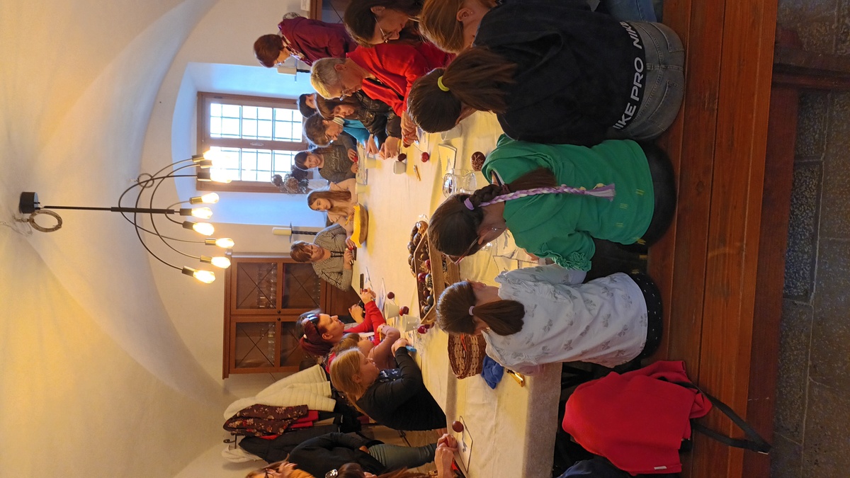 Druga delavnica, ki je potekala v nedeljo, 29. marca 2026, na gradu Prem, je privabila več kot 20 udeležencev. Zanimanje za starodavno tehniko okraševanja pirhov se iz leta v leto povečuje, kar je pomemben dokaz o uspešnem prenosu znanja na mlajše generacije.