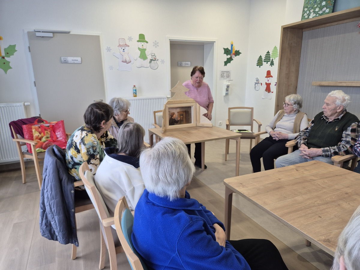 Srečanja se je udeležilo 17 stanovalcev, ki so se aktivno vključili v pogovor. Tema pogovora so bili »slovenski pregovori«. Začeli smo prav z godom sv. Neže, ki pripomore, da po dolgi in mrzli zimi kokoši spet začnejo nesti jajca. Ugotavljali smo, da je vsaj nekoč bilo tako, danes pa smo priča mnogim spremembam. Ernest Margon je prebral nekaj pregovorov, vezanih na mesec januar, ki napovedujejo, kakšna bo letina glede na vreme. Prisotnim smo nato razdelili lističe s pregovori, zapisanimi do polovice, drugi del so sami dorekli. Presenetljivo, starejši še vsi poznajo veliko pregovorov in jih tudi v pogovoru uporabljajo. Tudi skozi pregovore se ohranja slovenska kulturna dediščina. Sledilo je še presenečenje, saj sem jim povedala še Cankarjevo črtico Pehar suhih hrušk v tehniki kamišibaj, ki jih je zelo pritegnila. Obudila je osebne spomine, saj so črtico in nekdanje skromne a po svoje bogate čase sami dobro poznali.