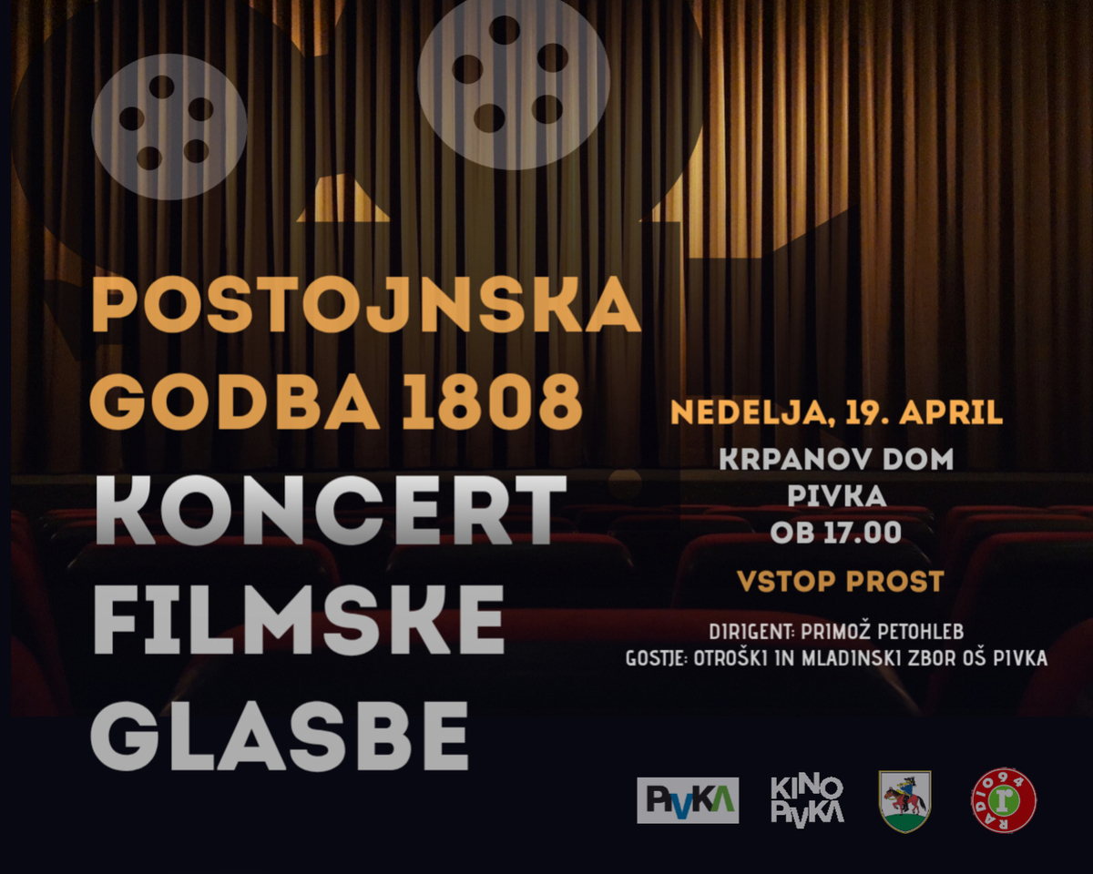 Vabljeni na koncert filmske glasbe, na katerem nastopa tudi Otroški in mladinski pevski zbor OŠ Pivka.