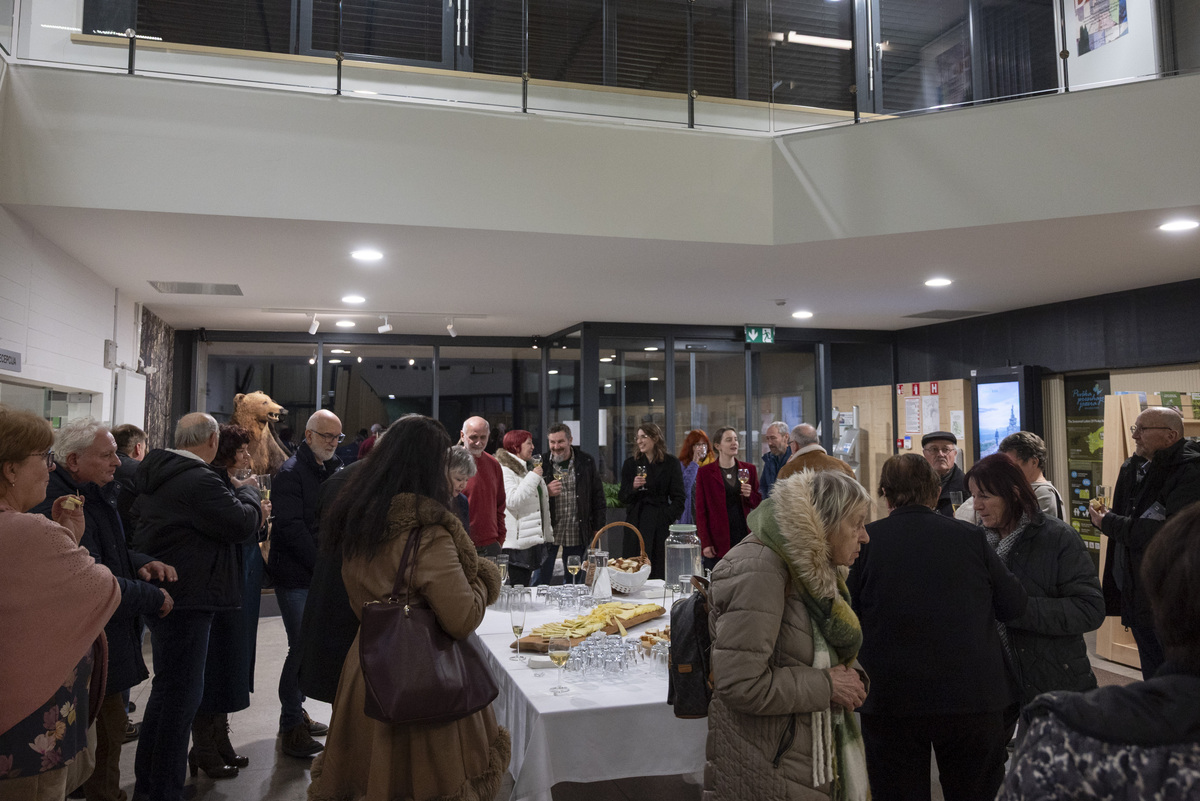 Ogledu razstave sta sledila zdravica in druženje, obiskovalci pa so spontano zapeli tudi himno – Prešernovo Zdravljico. Kulturi in domačim kulturnikom smo nazdravljali vse do začetka večerne predstave.