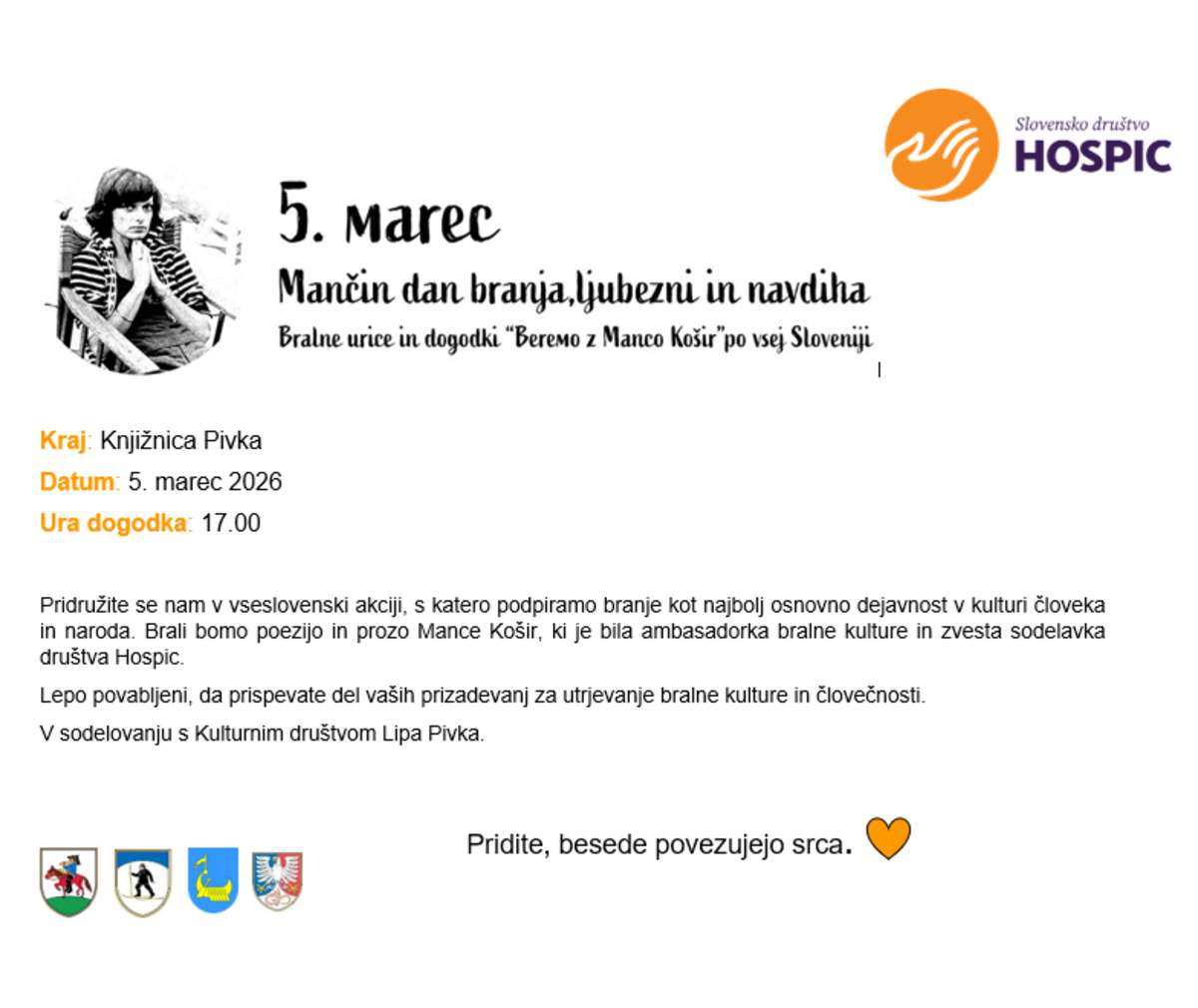 Pridružite se nam in soustvarite večer, kjer besede povezujejo srca. 💛