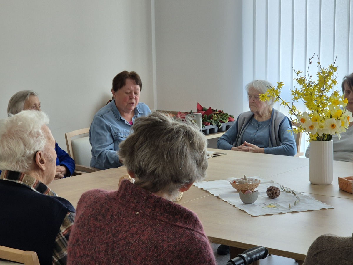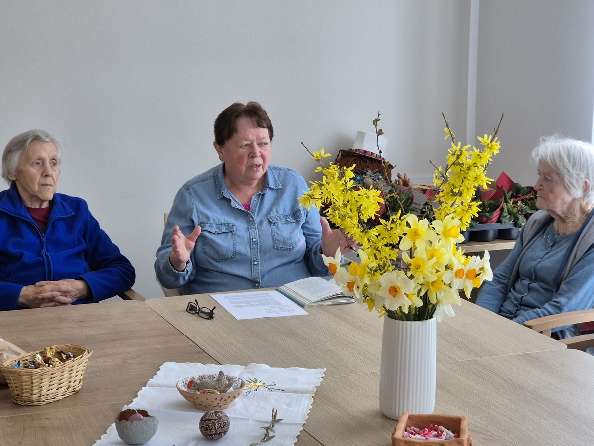25. marca na materinski dan so se oskrbovanci doma starejših Senecura v Pivki spet srečali na redni pogovorni uri, ki je bila namenjena spominjanju na praznovanje materinskega dne in velike noči. Ernest Margon, predstavnik Hospica, je za uvod prebral pesem Ferija Lainščka posvečeno materi. Sledil je pogovor o pripravah in praznovanju največjega krščanskega praznika. Na cvetno nedeljo so pripravili zelenje, lovor ali oljke, kar so lahko dobili in šli na blagoslov in procesijo, ki se je večinoma odvijala okoli cerkve. Oskrbovanci so se razgovorili in pripovedovali, kako so pomagali doma, kako so trli orehe, matere so pripravile potico in boljši kruh-pinco, barvali so pirhe in v soboto nesli košaro velikonočnih dobrot k »žegnu«. Tudi šunka in hren nista smela manjkati za praznik, drugače so povedali, da so nekoč skoraj vsi občutili pomanjkanje. Spominjali so se tudi, kako so se pripravljali na praznik. Do srede so opravili vsa dela zunaj, od četrtka dalje poljsko delo ni bilo več dovoljeno. Pospravljalo se je le po hiši, v soboto pa je zadišalo po potici. Seveda so se udeležili vseh obredov od velikega četrtka pa do praznične nedelje. V drugem delu pogovora sem oskrbovancem prebrala nekaj pesmi naših slovenskih pesnikov o veliki noči, pogovor pa smo zaključili z ugibanjem velikonočnih ugank.