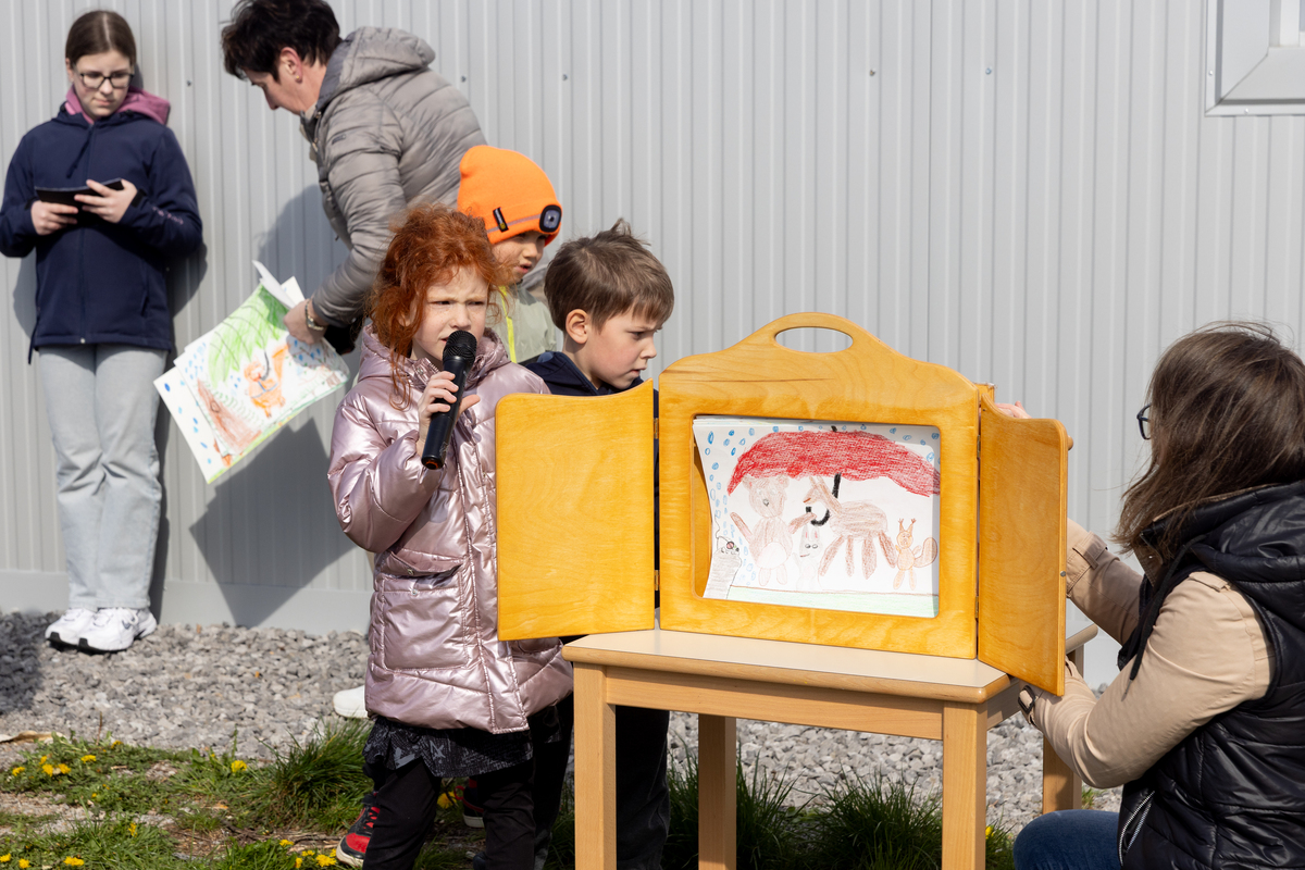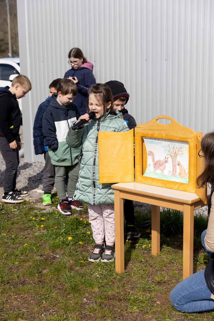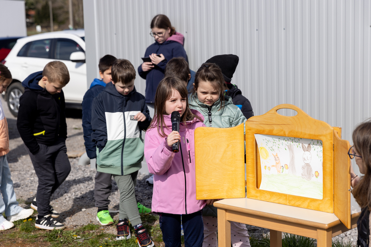 Otvoritev so s pesmijo in recitacijami izpeljali skupaj z otroci iz Osnovne šole Košana. Otvoritev je povezovala Naja Rutar, Manca Volk je deklamirala pesem Jožeta Volka Suhorskega »Kazen«, učenci 2. in 3. razreda so nastopili s pesmijo »Poj z menoj«. Otroci iz prvega razreda so uprizorili kamišibaj pravljico »Pod medvedovim dežnikom« avtorice Svetlane Makarovič, Taja Radivo je nastopila s pesmico »Medvedi in medvedki«. Otvoritev so s simboličnim prerezom traku zaključili otroci in župan Robert Smrdelj.