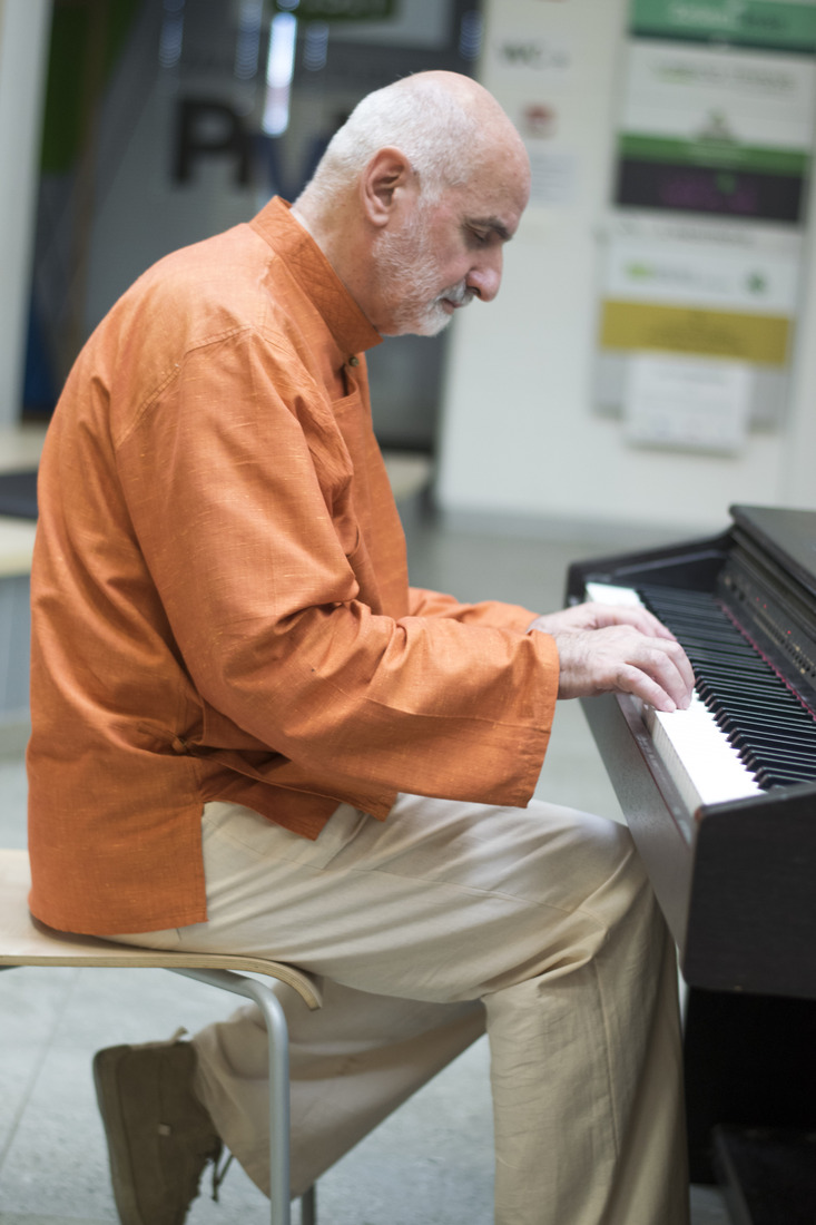 Bagrat je vsestranski umetnik, kar je dokazal z lastnim tenkočutnim glasbenim nastopom ob otvoritvi. Ugotavljali smo, da sta nam pisana beseda in glasba lažje razumljivi kot sodobne likovne podobe. Tako nas je Bagrat z igranjem na sintetizator uvedel v likovno govorico – v »upodobitve skritih pomenov sveta, ki ležijo onkraj vidnega«.