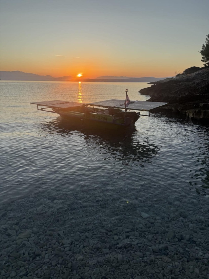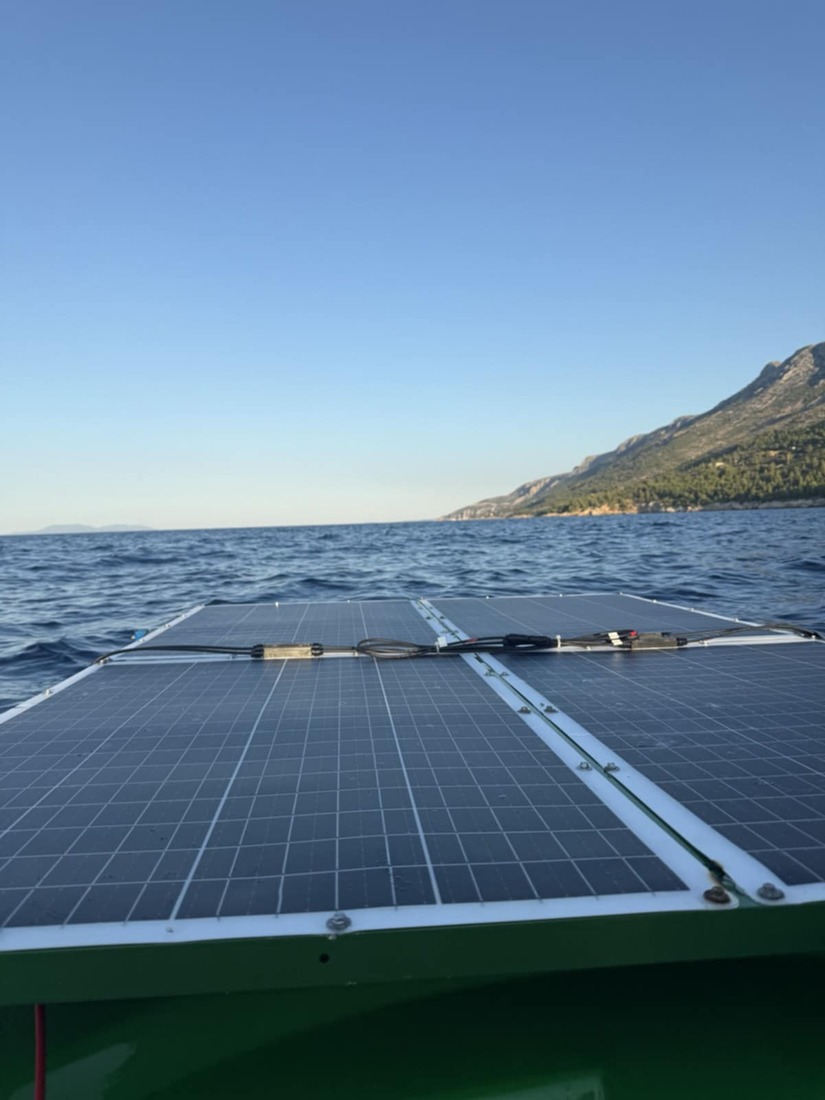 Plovilo, ki ga ekipa domačih entuziastov razvija že več kot desetletje, se napaja s sončnimi celicami in električnim pogonom, razvijajo pa tudi dodatne vire energije, kot sta vetrni in nihajni generator. V enajstih etapah sta pomorščaka skupaj preživela okoli 100 ur na morju, vsak dan po približno deset ur. Pot ju je vodila od Črne gore, prek dalmatinskih otokov Hvar, Brač in Lošinj, vse do Istre in končnega cilja v Piranu. Kot je povedal Milharčič, je bil največji izziv že sama gradnja čolna: »Takšnih plovil preprosto ni. Nimaš nikogar, ki bi ga lahko vprašal za izkušnje ali rešitve – vse moraš odkriti sam. Nobena obstoječa rešitev se ne prilega, za vse je treba izdelati nosilce, prilagoditve, pogosto celo večkrat, preden prideš do uporabne rešitve. Vedno ostane vprašanje, kako se bo plovilo obneslo v vodi – tudi če je v delavnici vse videti brezhibno, se pogosto izkaže, da v vodi ni tako, in si znova na začetku. Le vztrajnost in trma vodita k uspehu.«