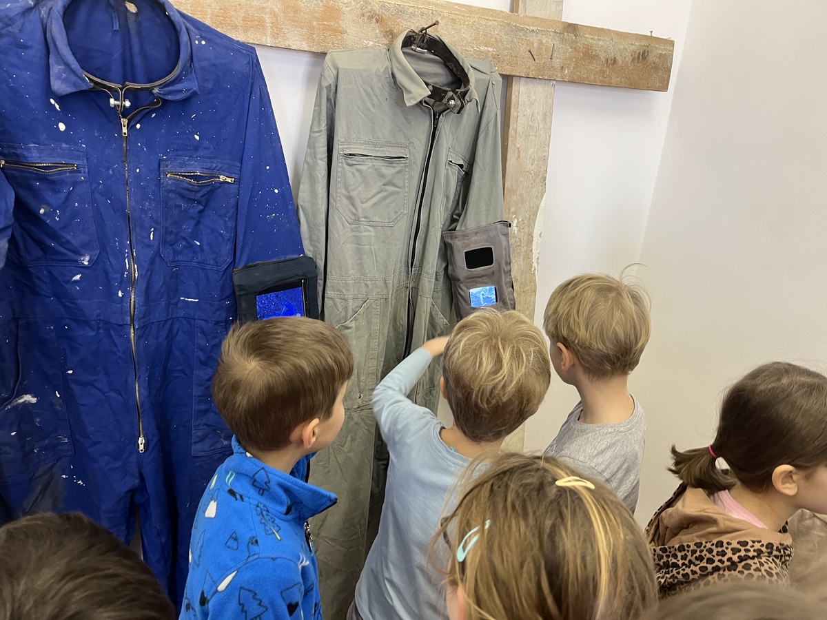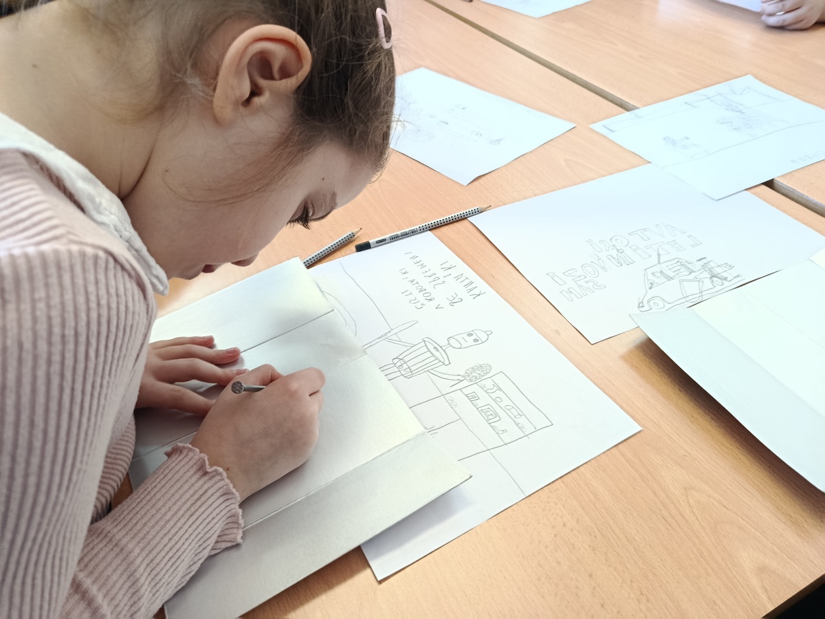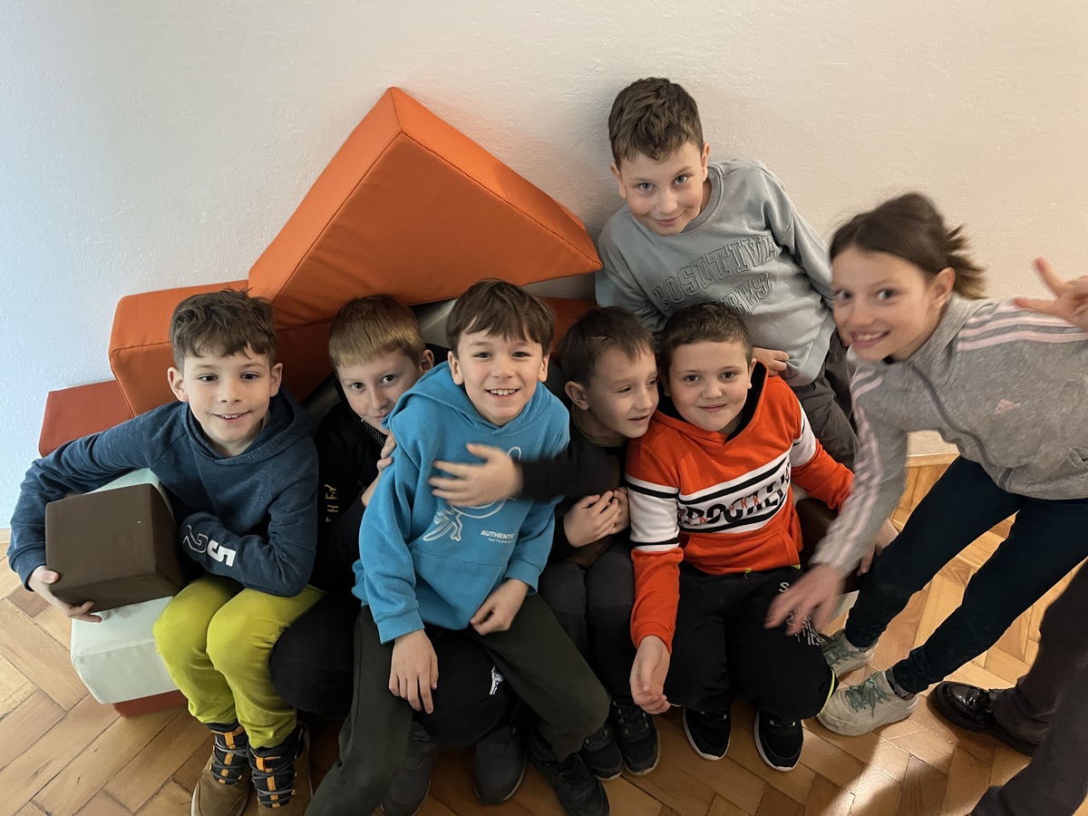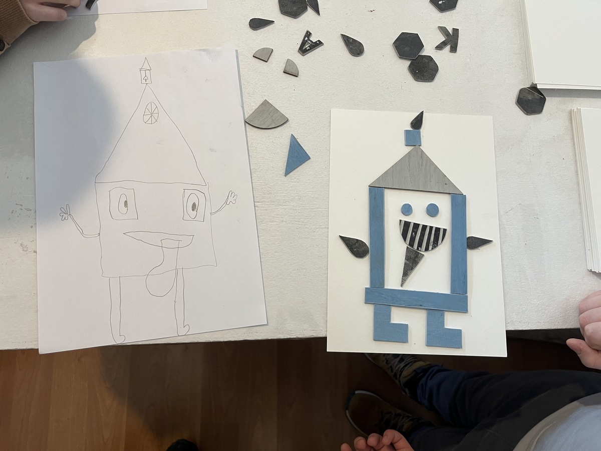 Po zasluženi malici so otroci še sami pričeli z ustvarjanjem: najprej so narisali skico, nato pa to idejo prenesli v grafiko. Tretješolci so pri tem uporabili tehniko slepega tiska, njihovi starejši vrstniki pa so spoznavali nekoliko zahtevnejši globoki tisk. Po navdihu z razstave je bil motiv ustvarjanja kos pohištva s posebno funkcijo, kar se je odražalo v zanimivih domislicah, od straniščne školjke, ki lovi ribe, do smetnjaka, ki čisti kar sam. Za konec so se otroci še preizkusili v tekmovanju hitrostnega postavljanja skulptur iz blazin, preden so na oslu spet odjahali v domačo učilnico.