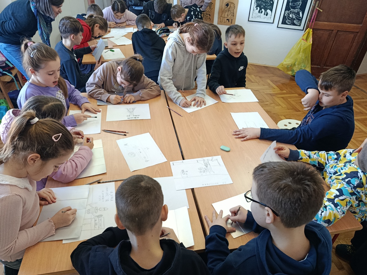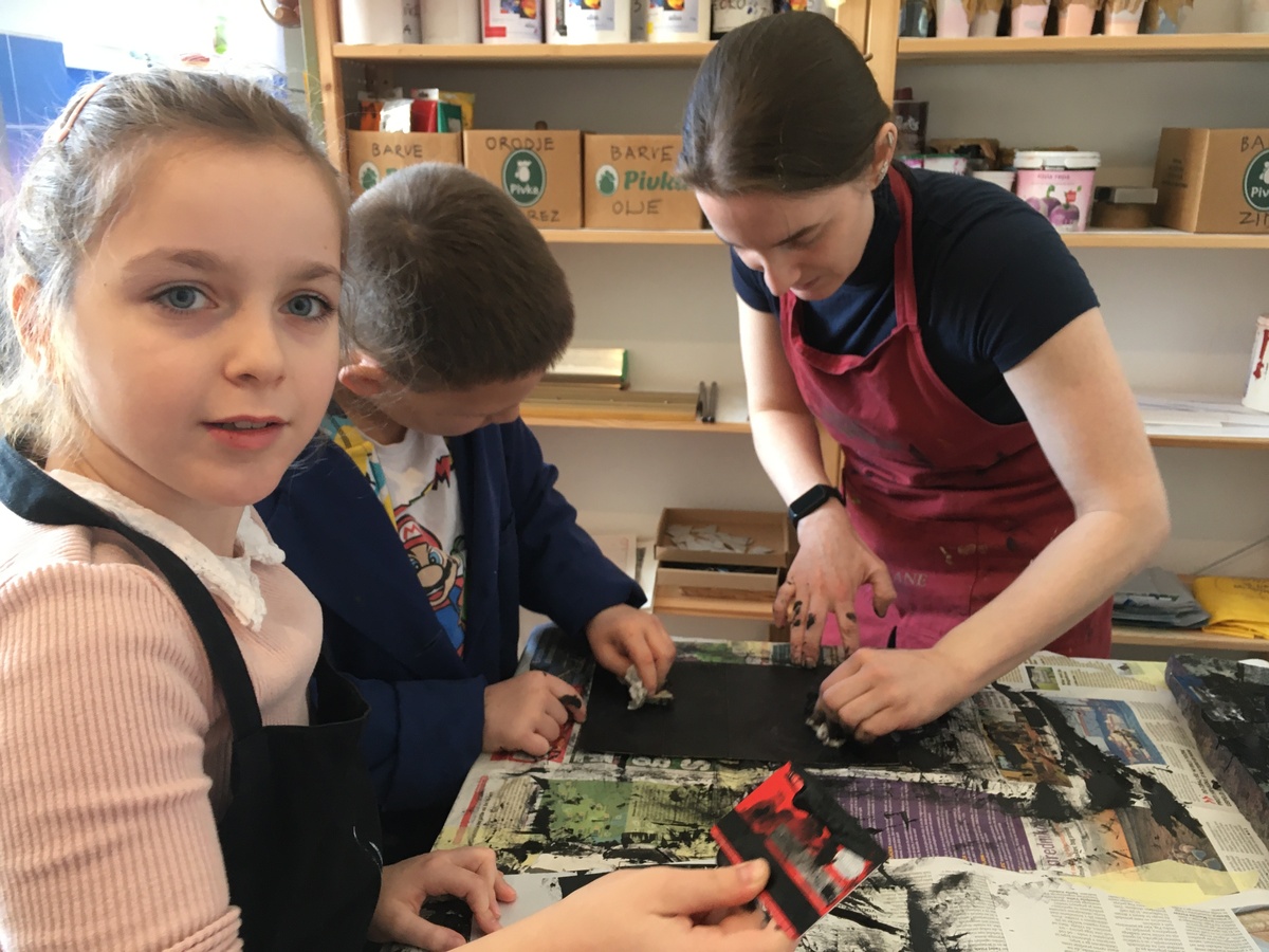 Pivški šolarji napolnili grafično delavnico v Hiši kulture