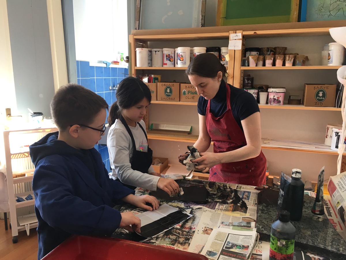 Februar v Hiši kulture je minil v znamenju bogatega ustvarjanja. Poleg dveh ustvarjalnih delavnic – medgeneracijske ob kulturnem dnevu in otroške v okviru počitniškega varstva – smo izvedli tudi dejavnosti za učence Osnovne šole Pivka. V obdobju treh dni smo gostili oba tretja razreda in 4. b, ki so v naši družbi pobližje spoznali pisani svet grafike.