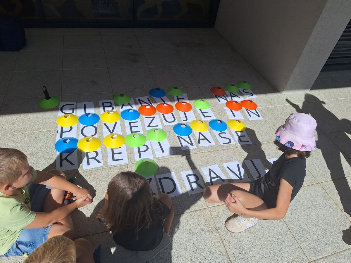 Tokrat so se otroci razgibali ob športnih igrah, ki so jih pripravili gostje iz Centra za krepitev zdravja Postojna. Lovljenje, Kitajski zid, hoja po slackline-u in druge igre so poskrbele za veselo dopoldne, ki se je zaključilo z miselno igro sestavljanja skrivnostnega gesla.