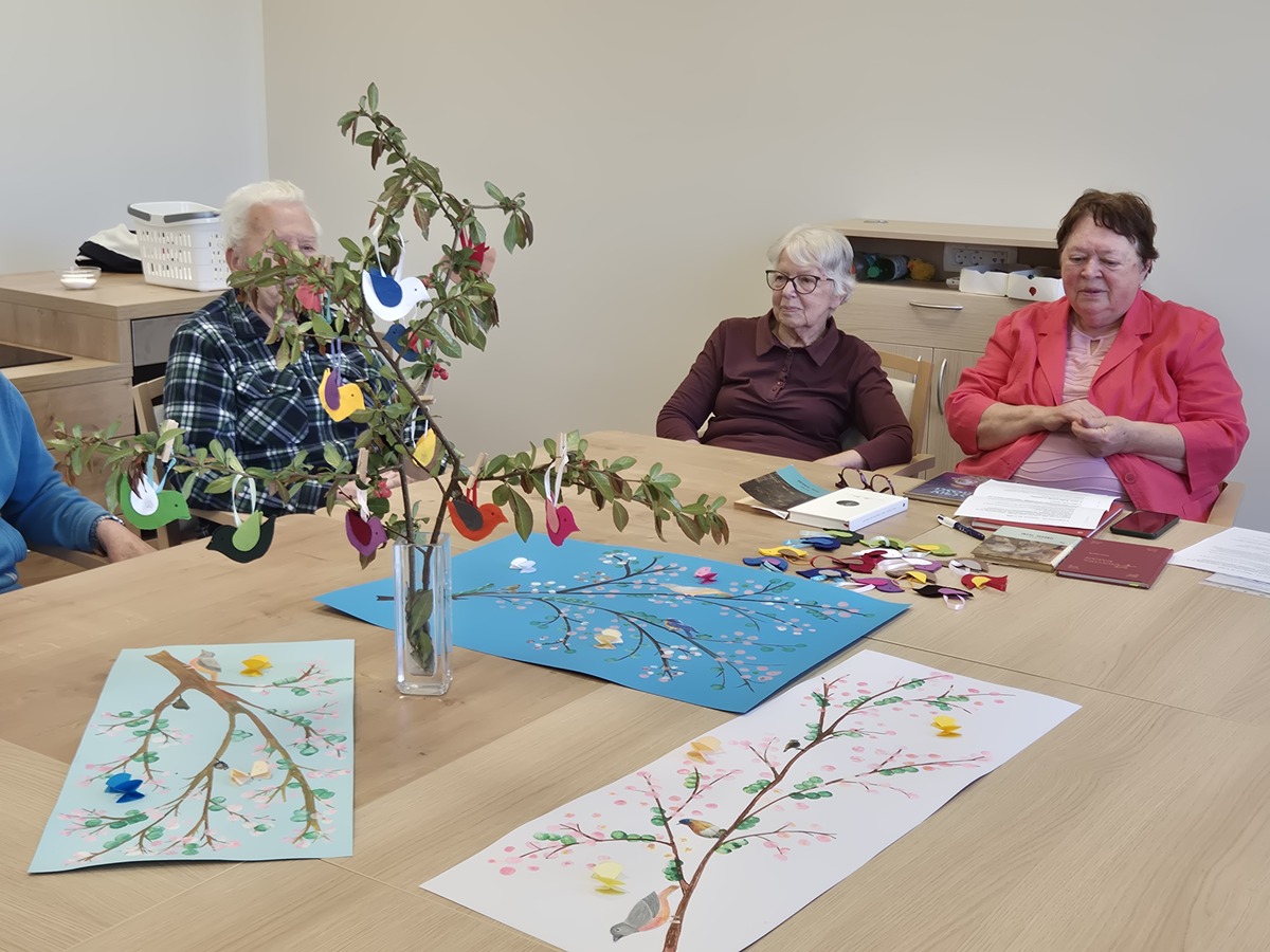 Konec aprila smo se ponovno srečali s stanovalci doma starejših SeneCura v Pivki. Srečanje je bilo namenjeno oskrbovancem za pogovor in obuditev pomladnega razpoloženja. Na srečanje je prišlo 15 oskrbovancev, ki so se lepo vključili v pogovor. Tema pogovora je bila pomlad, ki je že prinesla veliko sprememb v naše kraje. Tudi ljudje se že bolje počutijo, ko je dan daljši. Spominjali so se cvetenja rož, regrata, kako so v mladih letih začenjali delo na vrtu in njivah, kako je dišalo po pomladi, skratka vrnilo jih je v mlajše dni. Obujali so spomine na pomladne svetnike in tradicijo ob različnih praznikih.