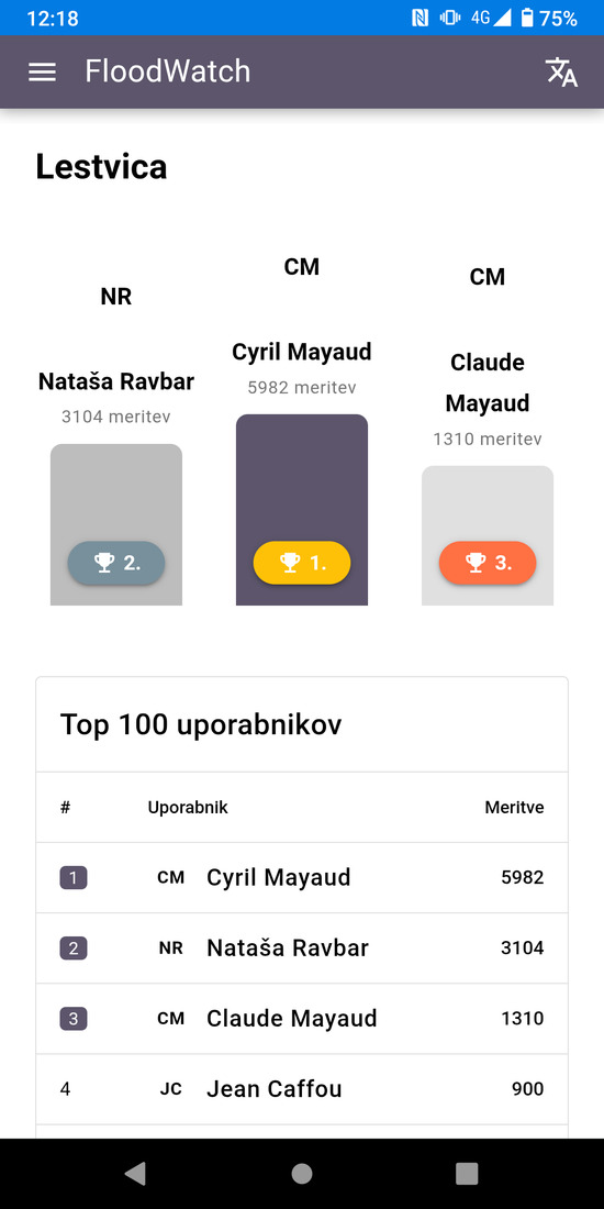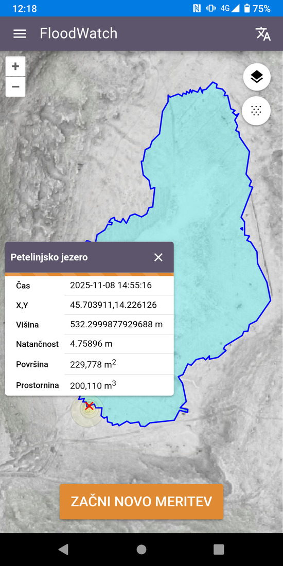 Opozorilo: aplikacija ni namenjena uporabi v primeru hudourniških poplav, kjer je varnost na prvem mestu.