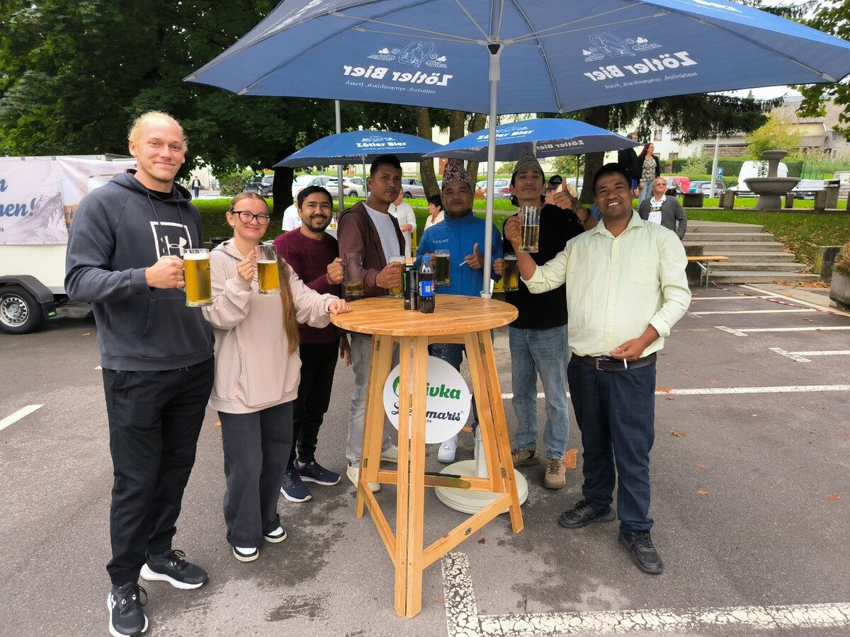 V letih, odkar prijatelji iz Duracha redno sodelujejo na dogodku Okusi Pivke, smo Pivčani njihovo pivo vzeli za svoje in ga z veseljem vključujemo v kulinarično ponudbo festivala. Njihova prisotnost in pivo vsako leto navdušujeta – letos tudi prijatelje iz Tivta, nepalsko kuharsko ekipo, lovce, številne kuharje in obiskovalce. Čeprav je jutro postreglo s kislim vremenom, sta lepo popoldne in dobra družba kmalu ustvarila prijetno vzdušje in povečala žejo po bavarskem pivu.