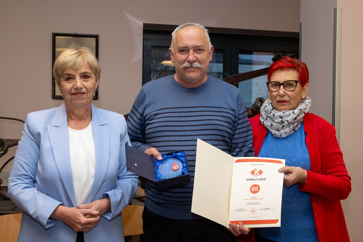 Za 80 darovanj krvi je priznanje in plaketo prejel Danilo Vičič.