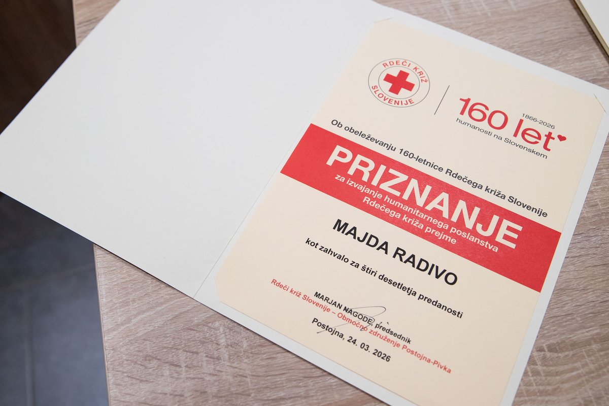 Območno združenje Rdečega križa Postojna–Pivka je 24. marca na zboru članov predstavilo Poročilo o delu za leto 2025 ter ob tej priložnosti podelilo priznanja krvodajalcem jubilantom, članom ekipe prve pomoči – bolničarjem, ki so aktivni že več kot 10 let, posebno priznanje za 40 let delovanja pa je prejela Majda Radivo.