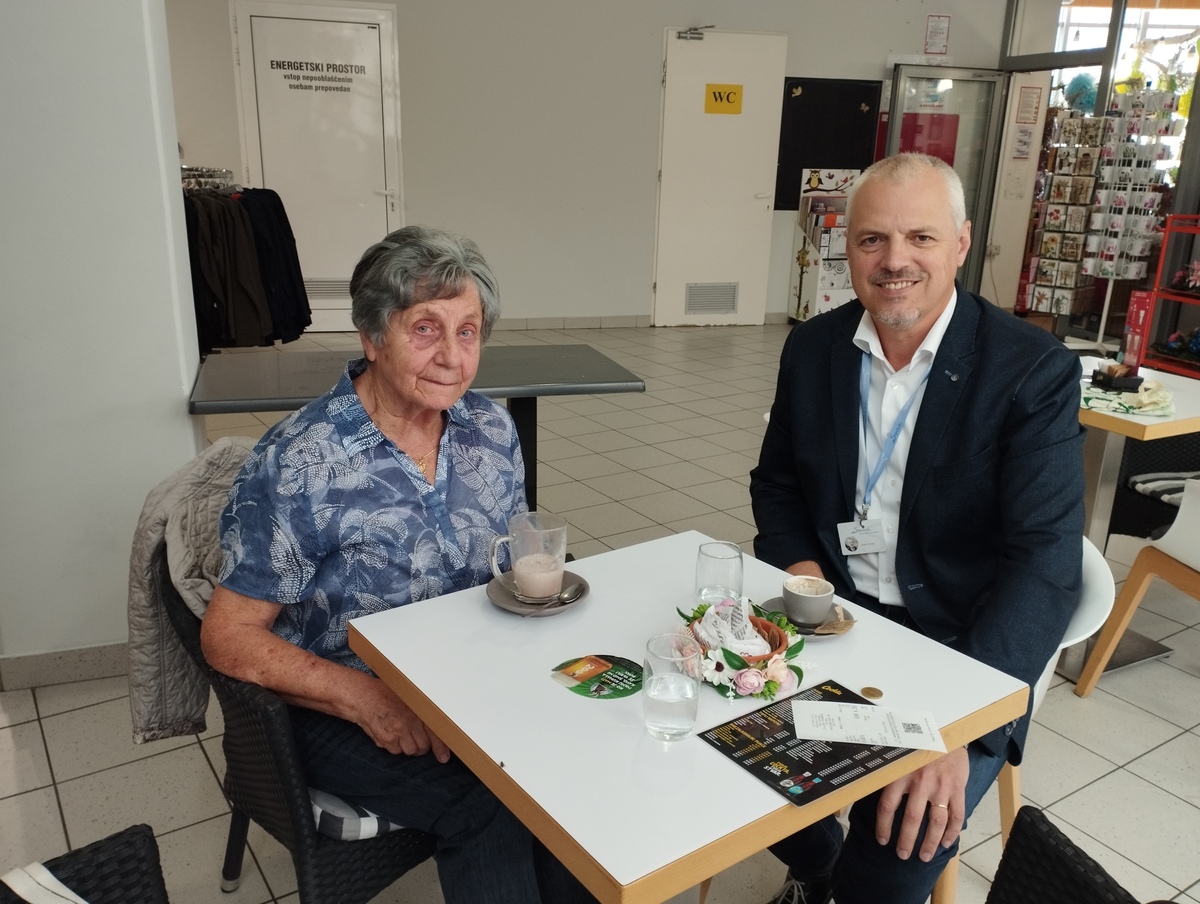 Tudi letos se je direktorica Zavoda za turizem Pivka, gospa Jana Gržinič, z veseljem odzvala povabilu k prostovoljstvu. Skupaj z gospodom Edom sta preživela prijetno popoldne ob kavi, ki ga je dodatno polepšala njegova nalezljiva dobra volja in pozitivna energija.